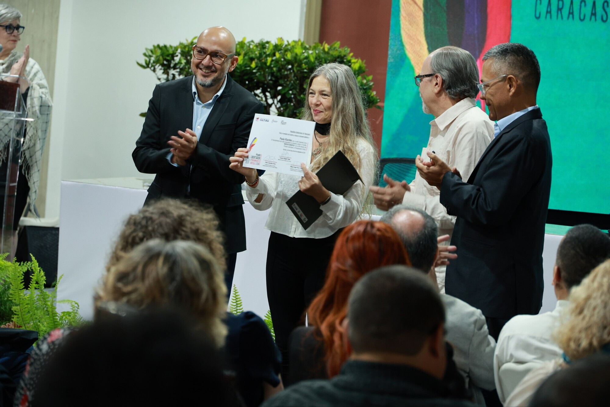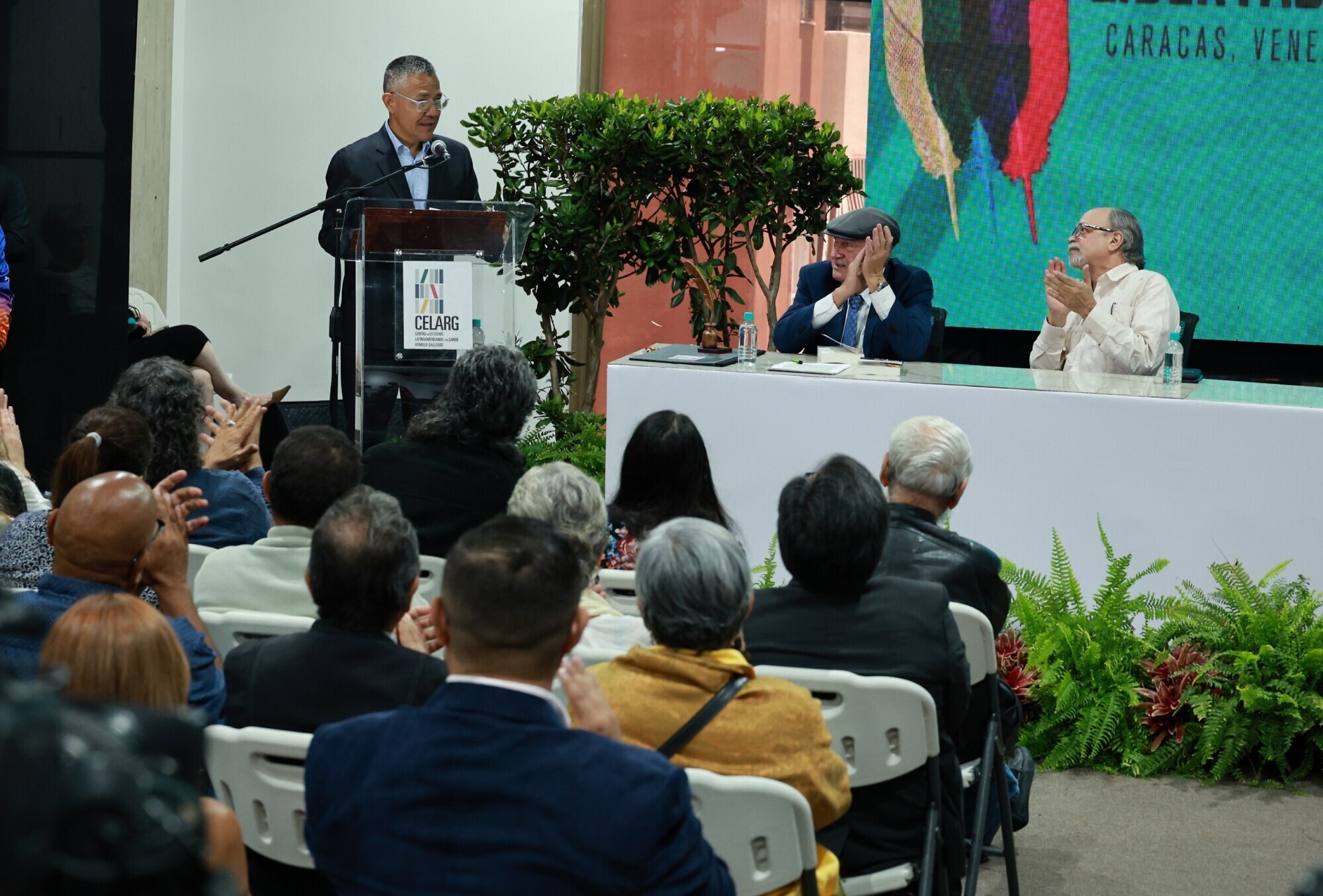 La actividad que inició con la proyección de un video histórico sobre los galardonados de ediciones anteriores, contó con la participación del ministro del Poder Popular para la Cultura, Ernesto Villegas; el presidente del Celarg, Pedro Calzadilla; el coordinador de la Red de Intelectuales y Artistas en Defensa de la Humanidad, Miguel Ángel Pérez Pirela; y la historiadora Carmen Bohórquez, en representación del jurado.