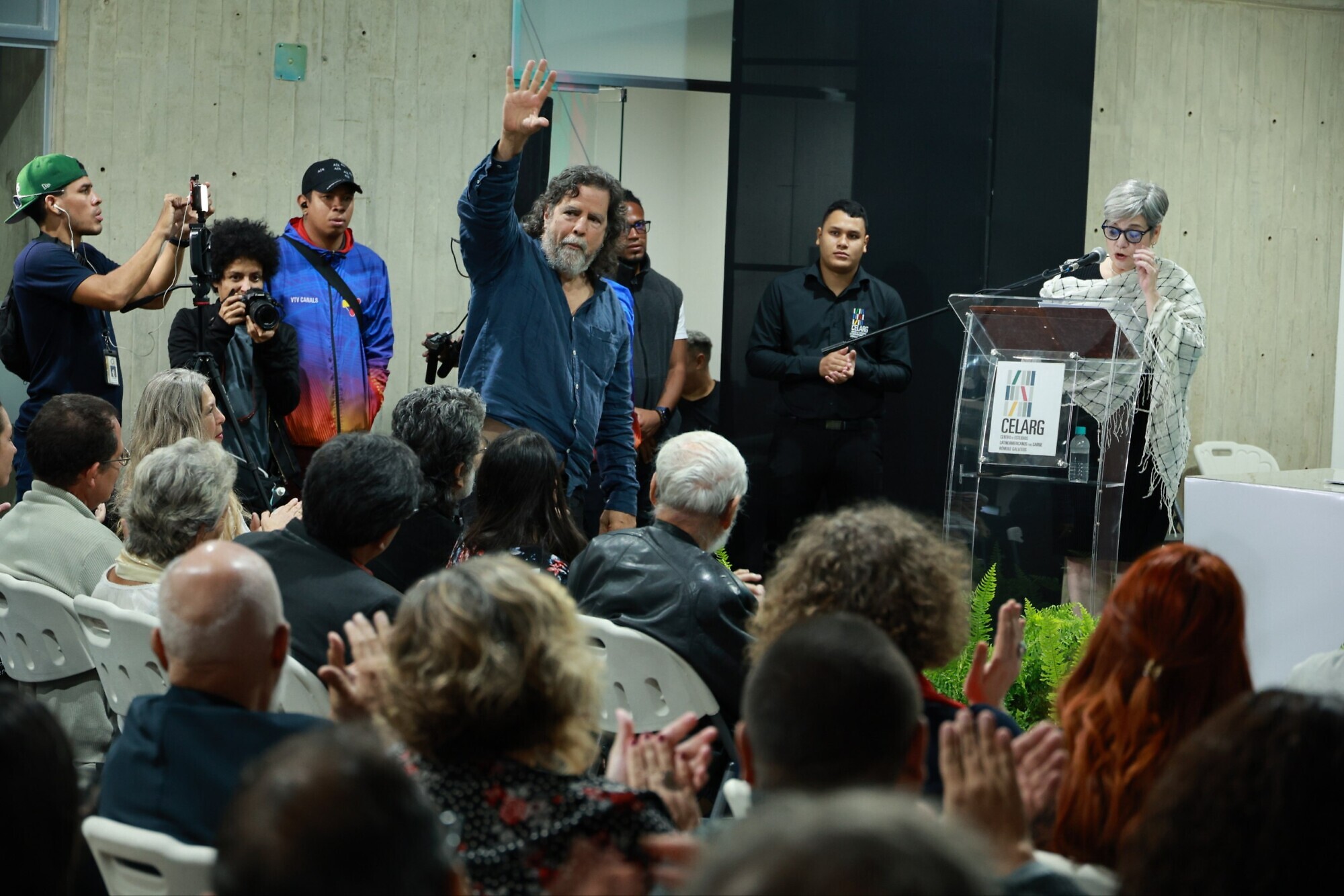 Pérez Pirela agradeció la presencia de figuras como el embajador de Cuba y los maestros Luis Britto García y Abel Prieto, y resaltó el trabajo de la red en la lucha contra el neofascismo.