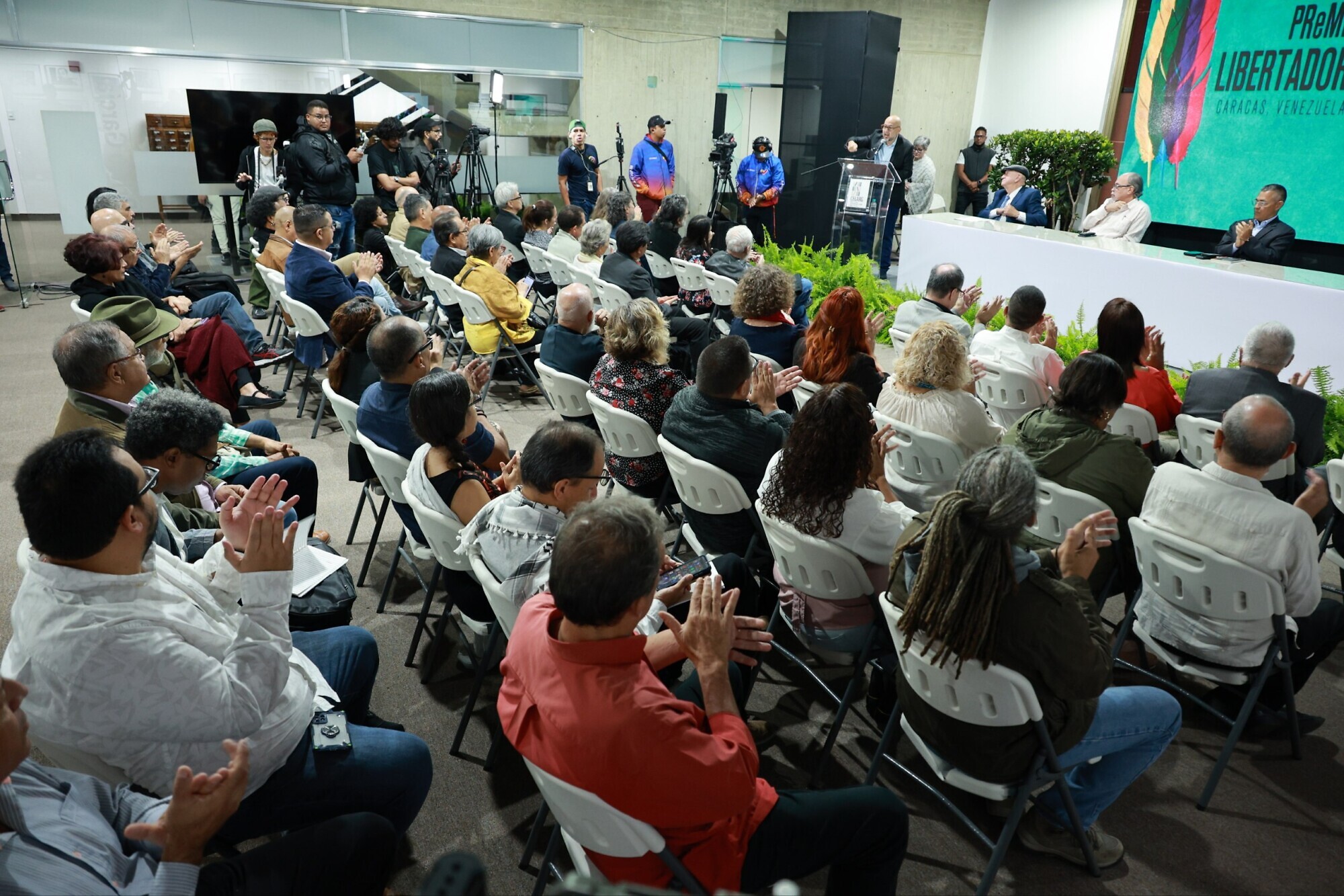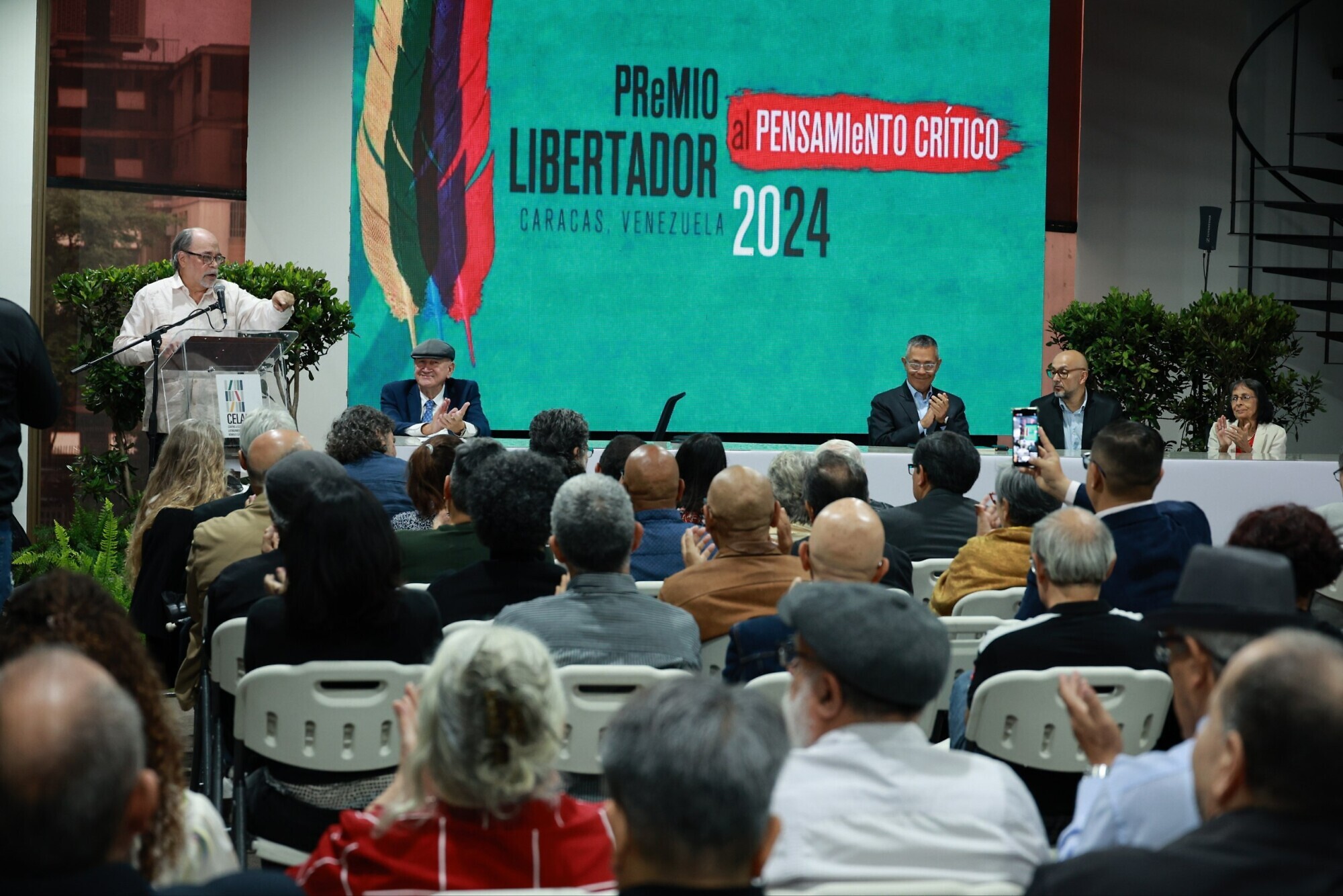 Calzadilla también vinculó el nombre del premio con la figura de Simón Bolívar, quien “estaba también escribiendo y diseñando el destino de este continente”. Con optimismo, el presidente del Celarg señaló que “las obras de este premio son una buena radiografía de este tiempo, las obras que participan. Dan una nueva alternativa al capitalismo”.