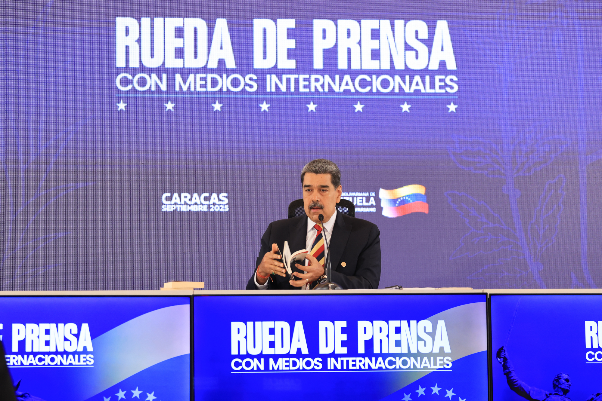 “Venezuela está enfrentando la más grande amenaza que se haya visto en nuestro continente en los últimos 100 años”, destacó el Presidente Nicolás Maduro este lunes en rueda de prensa con medios internacionales. “Ocho barcos militares, con 1.200 misiles y un submarino nuclear apuntan a Venezuela. Es una amenaza extravagante, injustificable, inmoral, absolutamente criminal y sangrienta. Ellos han querido avanzar hacia lo que llaman ‘máxima presión’, en este caso militar. Y nosotros hemos declarado ‘la máxima preparación’ para la defensa de Venezuela, activando siempre la Constitución”, indicó.