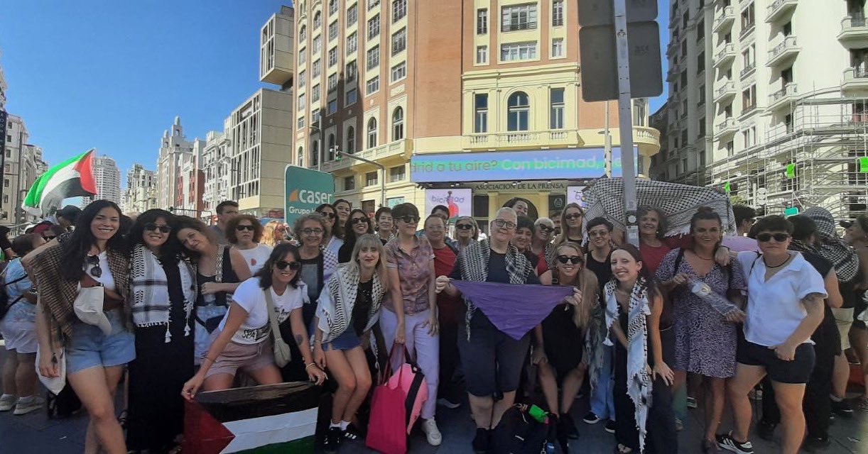 “Esta Vuelta la gana Palestina” ha sido uno de los gritos más escuchados. “Esto más va más allá de cuestiones individuales como que los ciclistas decidan no retirarse. Está ocurriendo un genocidio. Protestas como esta son ejemplo de comunidad y da esperanza al mundo al mostrar resistencia frente a la barbaridad”, ha explicado Elena a Público, que ha venido a protestar contra el genocidio palestino con un grupo de amigas.