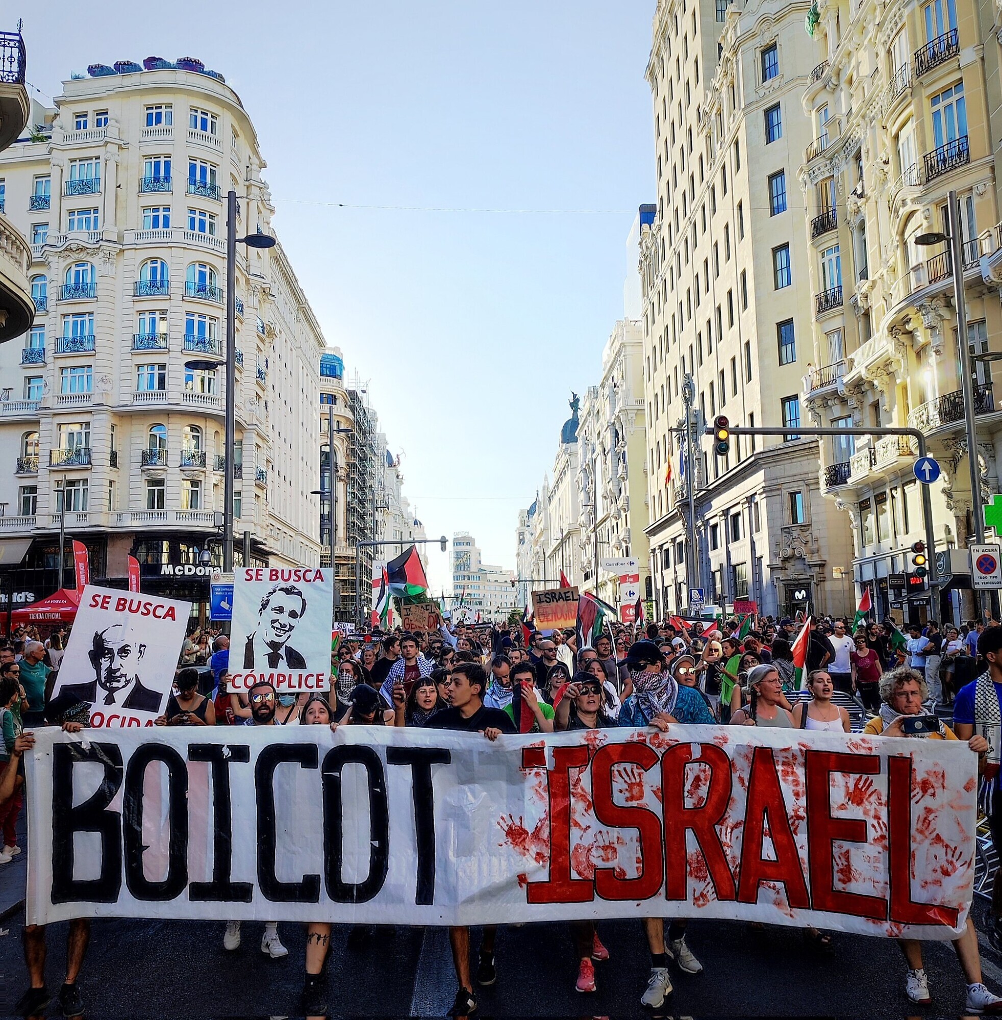 Las protestas masivas y disruptivas, que llevan semanas, pedían la exclusión de la carrera deportiva del equipo Israel-Premier Tech, que compite por derecho propio y no invitado por Unipublic, la empresa organizadora de La Vuelta, según las normas de la Unión Ciclista Internacional (UCI).