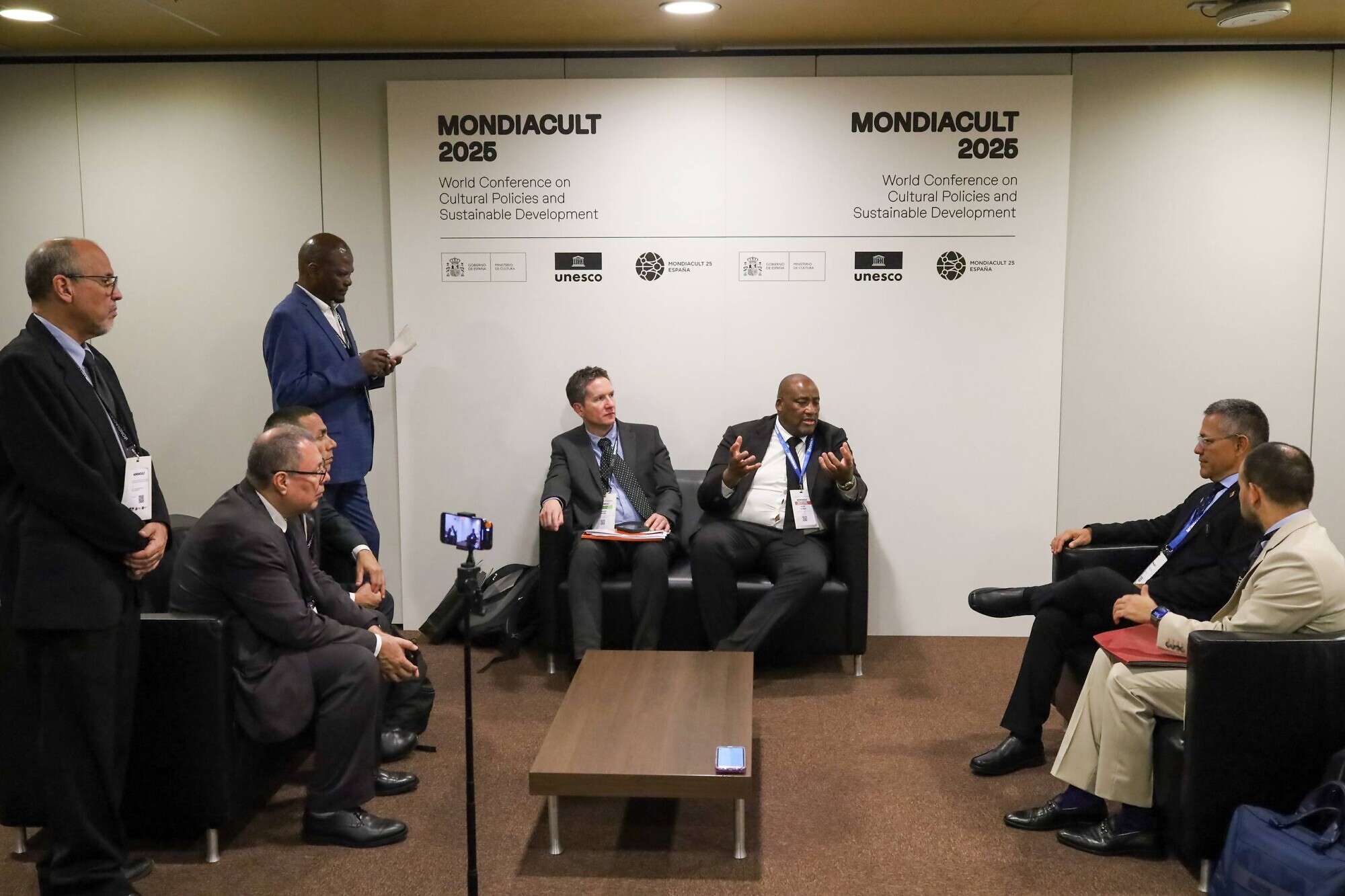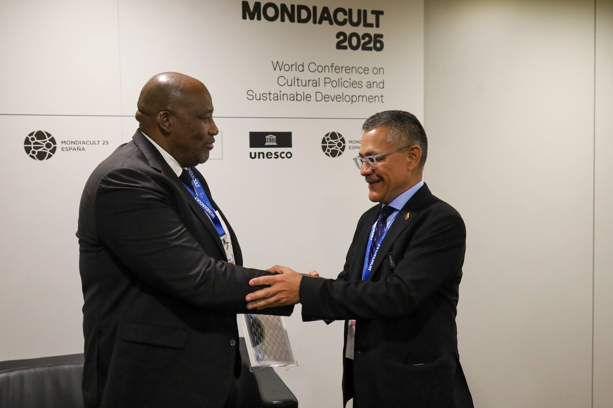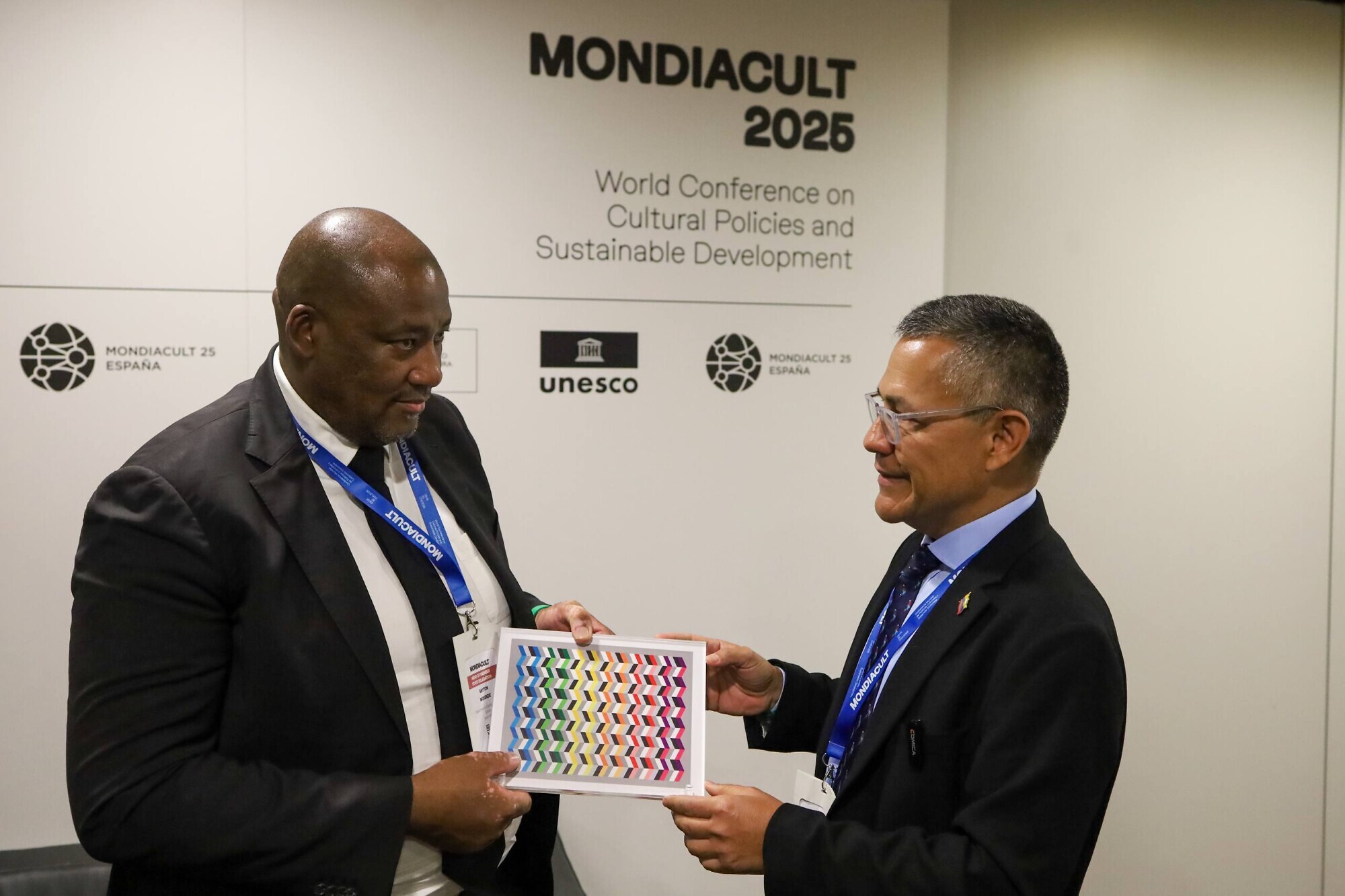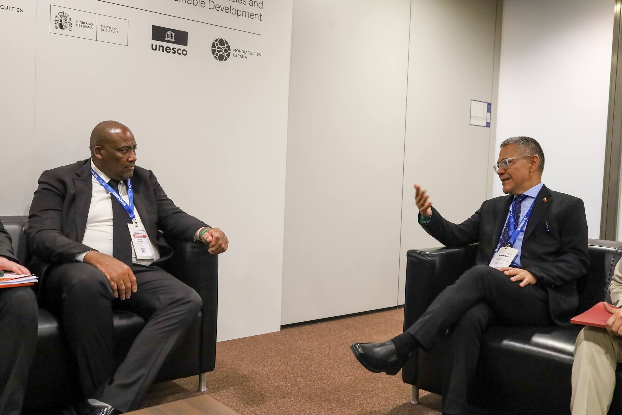 Este lunes, el ministro del Poder Popular para la Cultura de Cultura de Venezuela, Ernesto Villegas, y su homólogo de Deportes, Artes y Cultura de Suráfrica, Gayton Makenzie, sostuvieron una significativa reunión, como parte de la Conferencia Mundial de Políticas Culturales de la Unesco (Mondiacult) 2025) que se celebra en Barcelona, España.