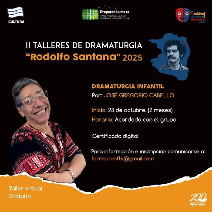 - También desde la capital, José Gregorio Cabello dará inicio a su taller de Dramaturgia Infantil en formato virtual, ajustándose al horario que mejor convenga a los participan-tes.