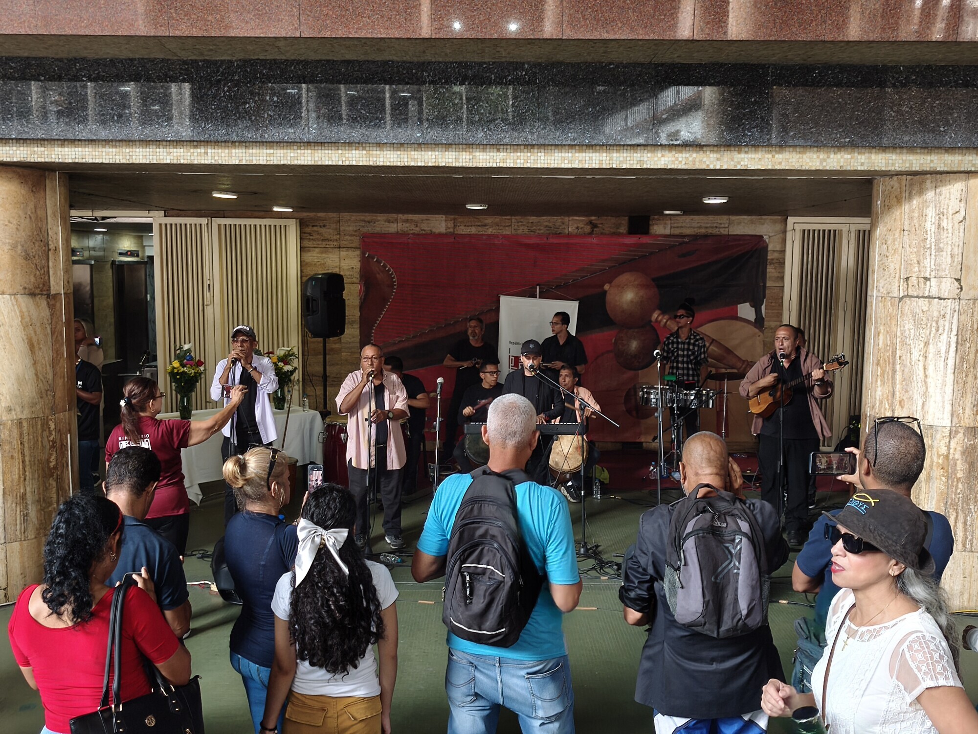 En esta ocasión, la bendición estuvo a cargo del Padre Gustavo Albarrán, de la Iglesia de San Francisco. Posteriormente, seis grupos gaiteros acompañaron y deleitaron a las personas que hacen vida en tan importante espacio caraqueño como lo es el Centro Simón Bolívar, adyacente a las plazas Diego Ibarra y Caracas, el terminal Río Tuy, la sede principal del Consejo Nacional Electoral, el edificio de la Asamblea Nacional y tantos otros.