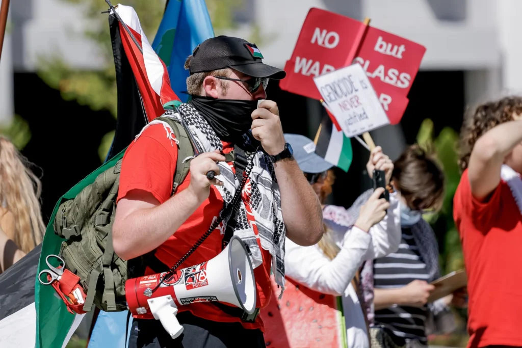 Los manifestantes denuncian que, desde octubre de 2023, Israel ha asesinado a casi 66.000 palestinos.