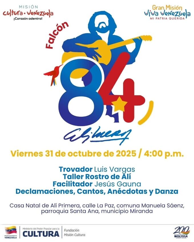 El Ministerio del Poder Popular para la Cultura, a través de la vital Gran Misión Viva Venezuela, Mi Patria Querida y la Misión Cultura, despliega una programación que no se queda en el escenario frío, sino que baja a la raíz, al barrio, al sentir. Es el homenaje que rompe el Un torrente de pueblo y guitarra, esa es la voz que resuena al evocar los 84 años del natalicio de Alí Primera, el cantor que sembró conciencia en cada acorde. No es una simple fecha en el calendario; es una canción necesaria que vuelve a brotar del corazón de Venezuela.