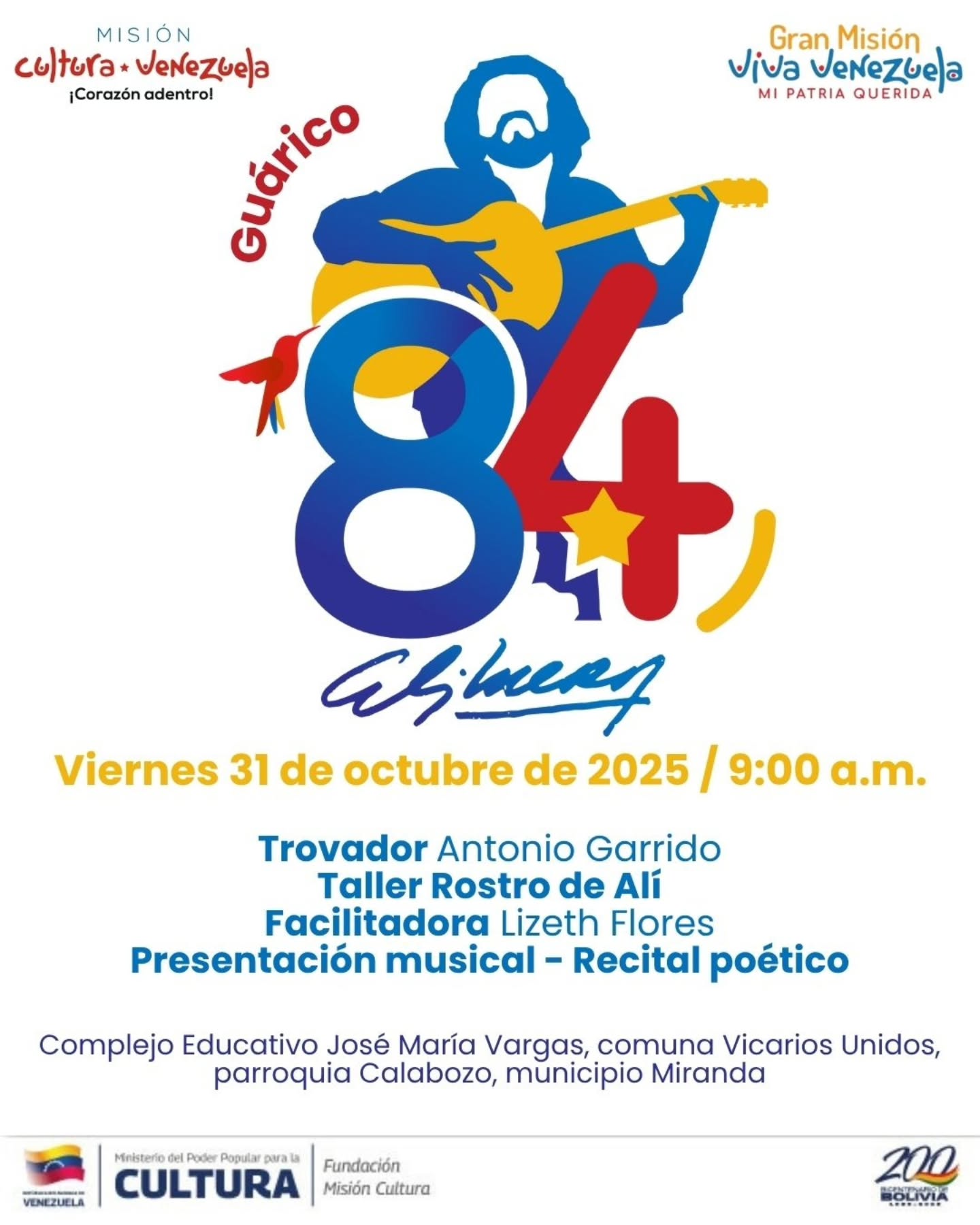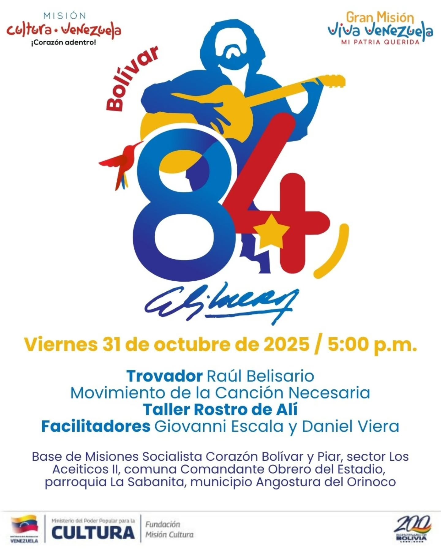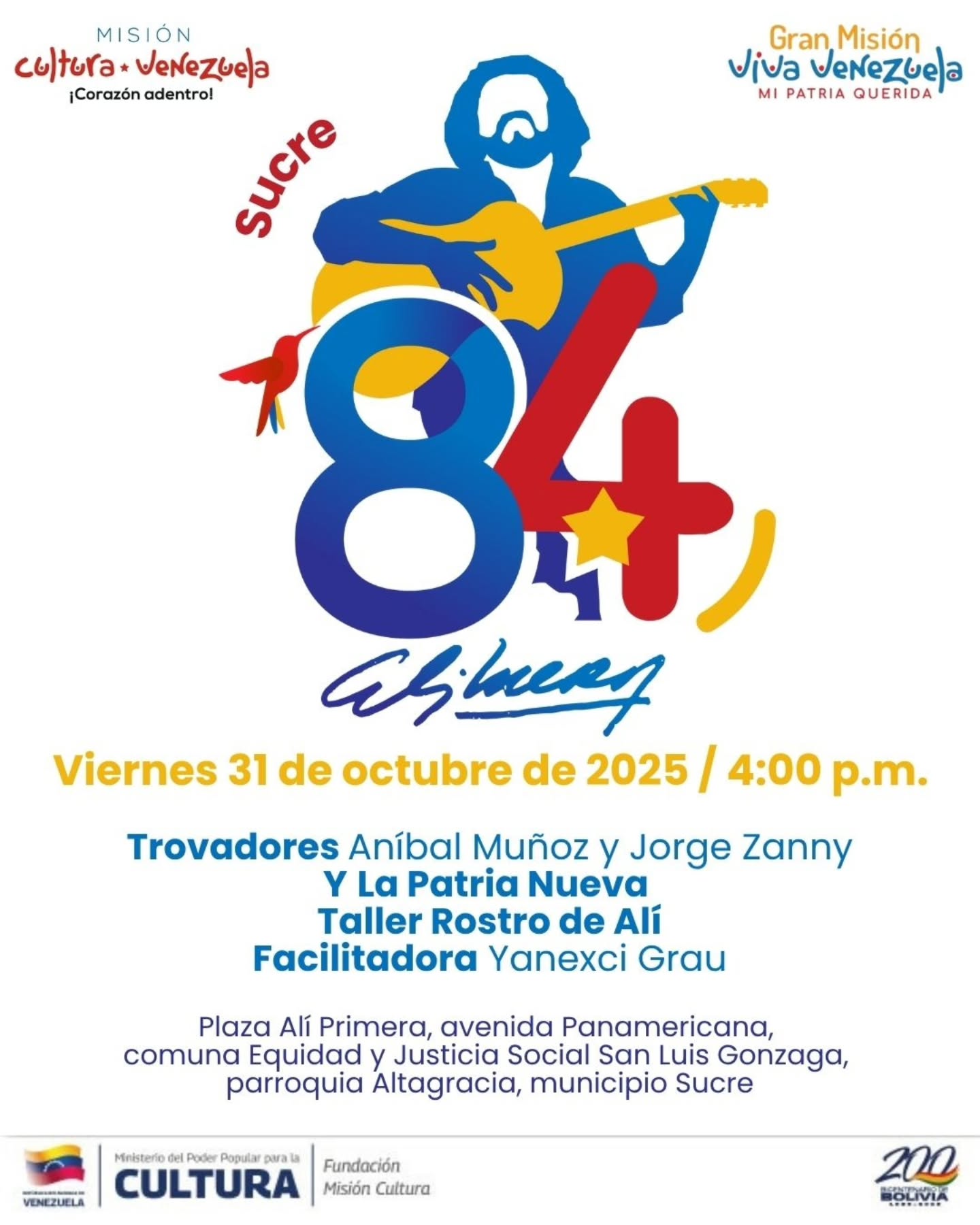 El Ministerio del Poder Popular para la Cultura, a través de la vital Gran Misión Viva Venezuela, Mi Patria Querida y la Misión Cultura, despliega una programación que no se queda en el escenario frío, sino que baja a la raíz, al barrio, al sentir. Es el homenaje que rompe el Un torrente de pueblo y guitarra, esa es la voz que resuena al evocar los 84 años del natalicio de Alí Primera, el cantor que sembró conciencia en cada acorde. No es una simple fecha en el calendario; es una canción necesaria que vuelve a brotar del corazón de Venezuela.