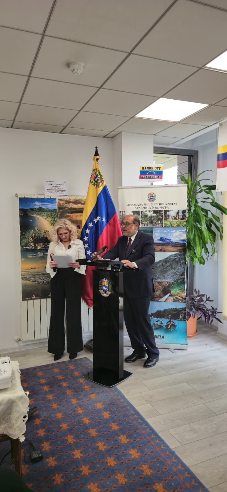 El día 14 de octubre, en la Embajada de la República Bolivariana de Venezuela en Rumanía se organizó el acto de Solidaridad con Venezuela, frente a la intensificación de las amenazas de los EEUU contra Venezuela. El evento contó con la participación de la Embajadora de Cuba, los miembros de la Asociación de Amistad Rumanía – Venezuela, los miembros de del Partido Socialista de Rumanía, periodistas que participaron en el debate, así como de los amigos, solidarios y simpatizantes de Venezuela.