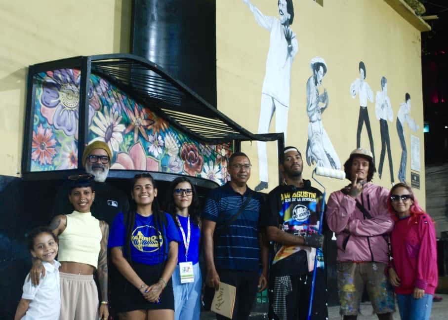 La actividad contó con la participación de miembros de la escuela de intervención mural “Guaguancó de Colores de 100% San Agustín”, artistas nacionales e internacionales, y vecinos del sector.