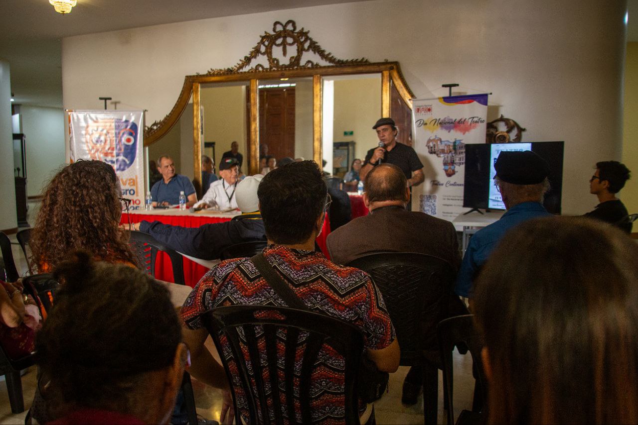 En el Teatro Nacional, los historiadores Carlos Edsel, Óscar Acosta y Gabriel Saldivia encabezaron un conversatorio sobre la celebración de esta fecha y sus antecedentes históricos. Edsel y Saldivia ofrecieron reflexiones sobre el teatro precolombino en Venezuela, con referencias a las primeras expresiones escénicas indígenas a través de desfiles, danzas, cantos y narración de historias.