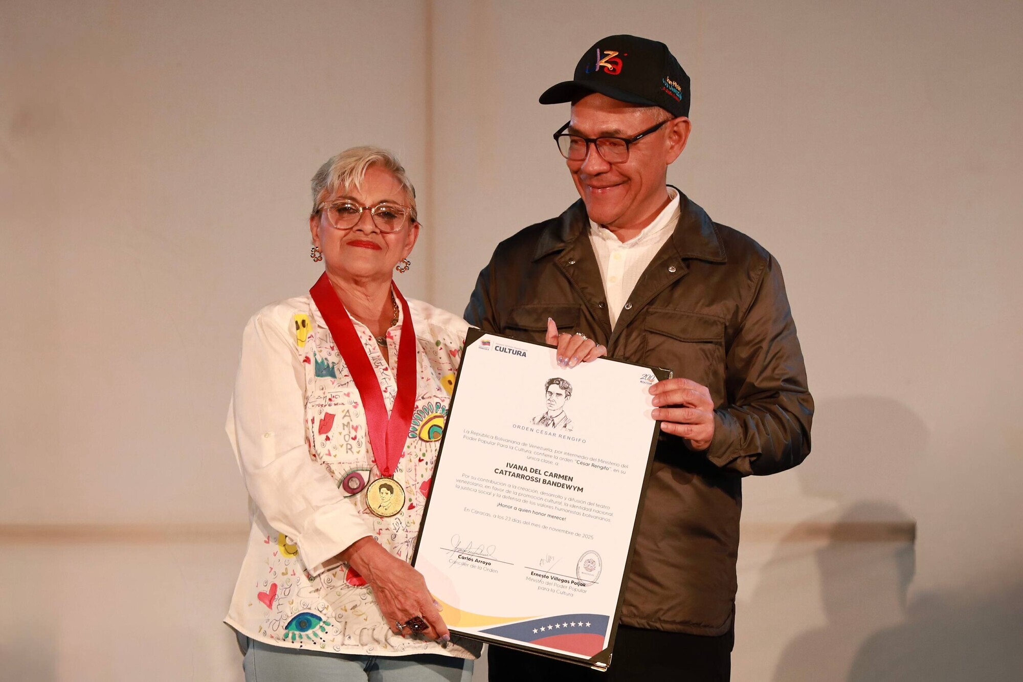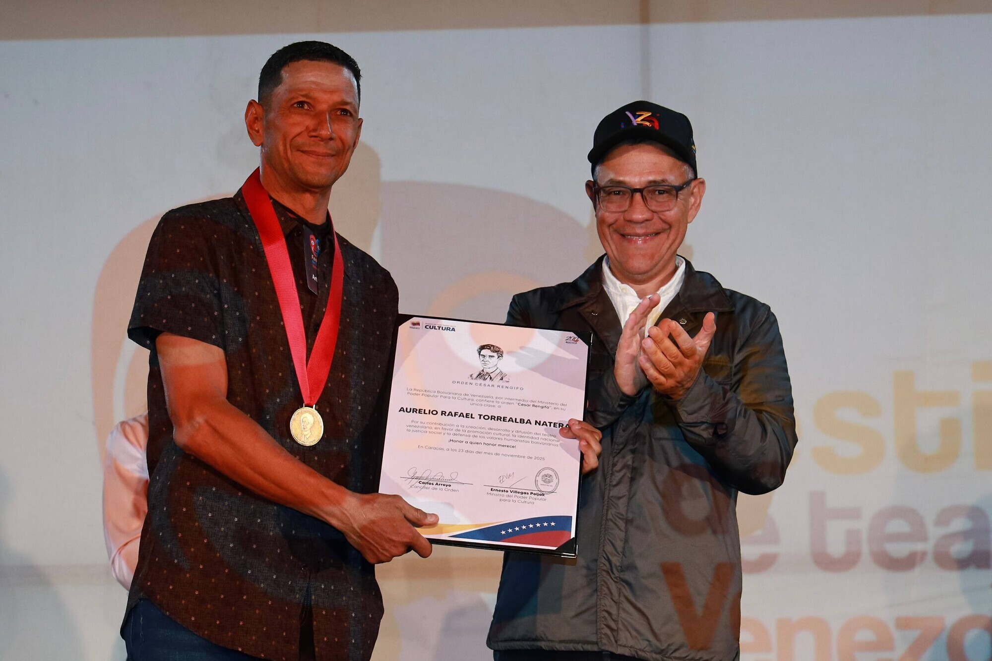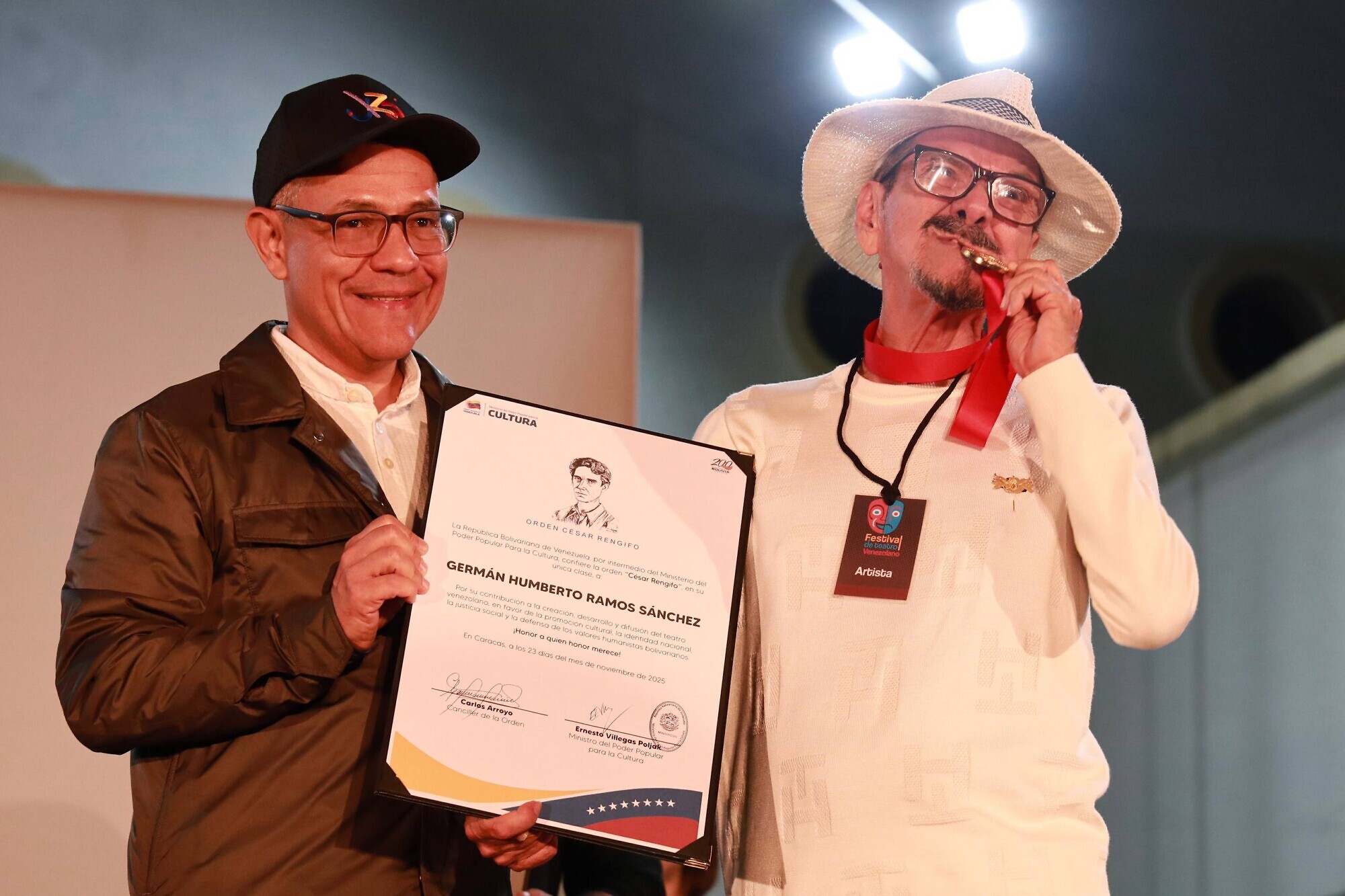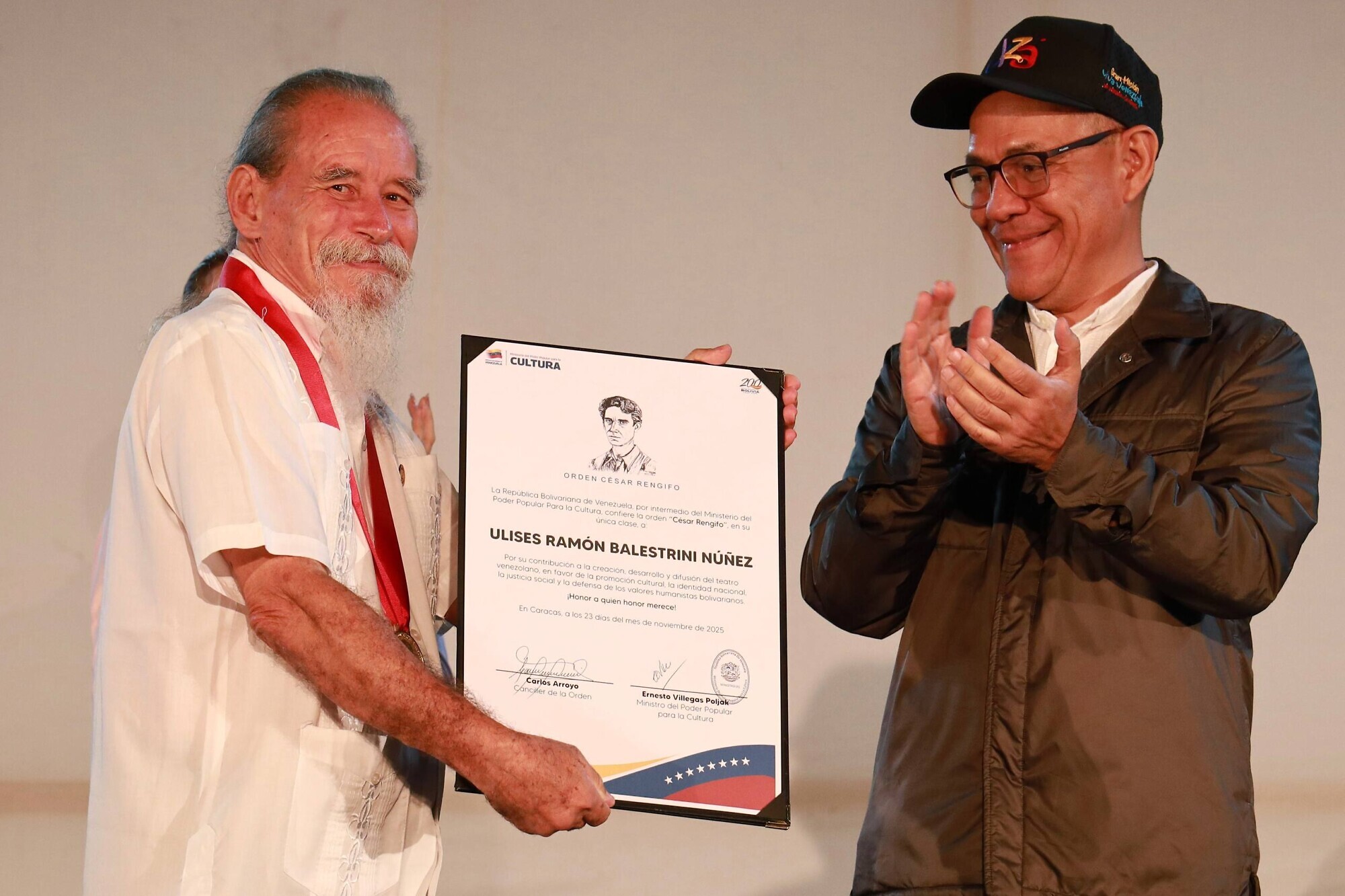 En su intervención, el ministro Ernesto Villegas destacó la pertinencia de establecer la Orden César Rengifo, una condecoración que rescata la figura del ilustre dramaturgo venezolano y reconoce la trayectoria del talento teatral nacional. “En el momento histórico que atraviesa Venezuela viene desde la eternidad Rengifo y se hace presente en el pecho de cada uno de ustedes. Es un sortilegio, un milagro, un prodigio que nos llena de fuerza”, afirmó.