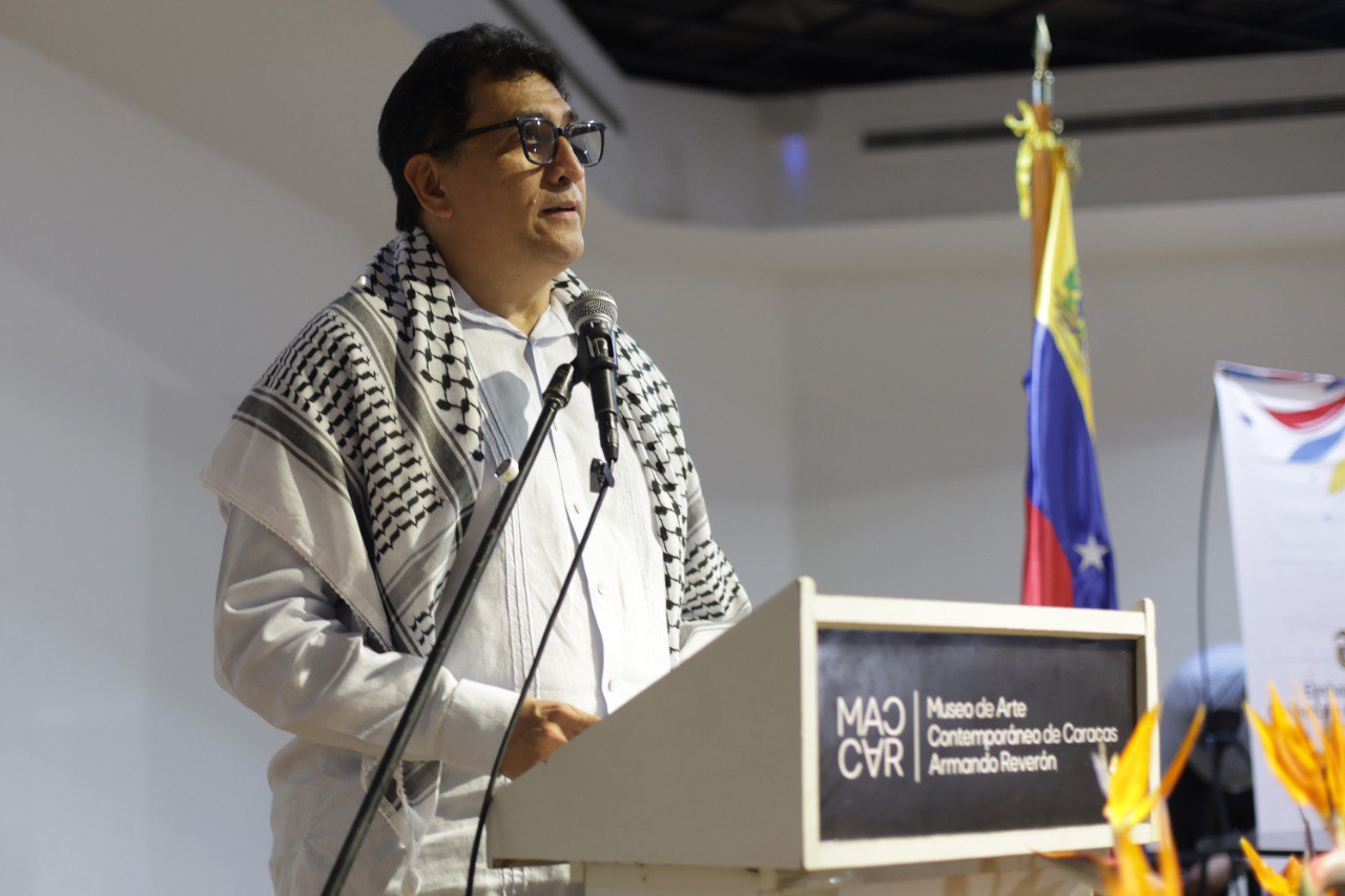 Durante su intervención en la inauguración, el Ministro para la Cultura, Ernesto Villegas Poljak, indicó que la igualdad esencial de todos los seres humanos es un principio fundamental que, cuando no es reconocido, conduce a tragedias como la Segunda Guerra Mundial y las políticas de exterminio. Subrayó que, la agresión contra el pueblo palestino no es solo un ataque contra un grupo específico, sino una herida para toda la humanidad, que queda incompleta cuando una parte de ella es agredida.