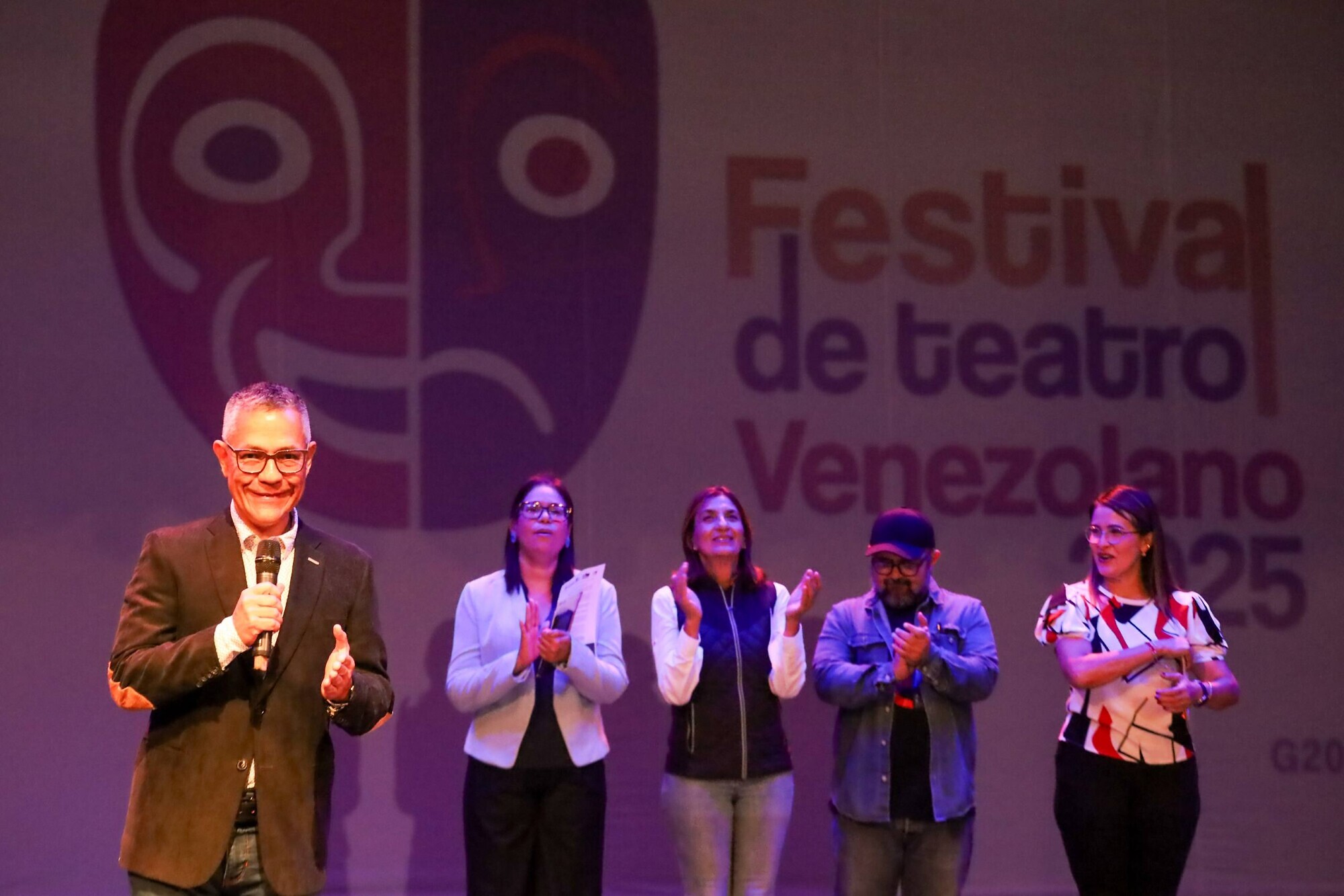 El Festival de Teatro Venezolano (FTV) inició este jueves 13 de noviembre en el Teatro Bolívar de Caracas, con una emotiva ceremonia que se sumó a la celebración del Día Nacional del Teatro y reafirmó la vitalidad de la cultura venezolana. El evento contó con la participación del ministro del Poder Popular para la Cultura, Ernesto Villegas; la viceministra de Cultura, Karen Millán; el director de la Compañía Nacional de Teatro, Carlos Arroyo, autoridades gubernamentales y miembros de la comunidad teatral venezolana.