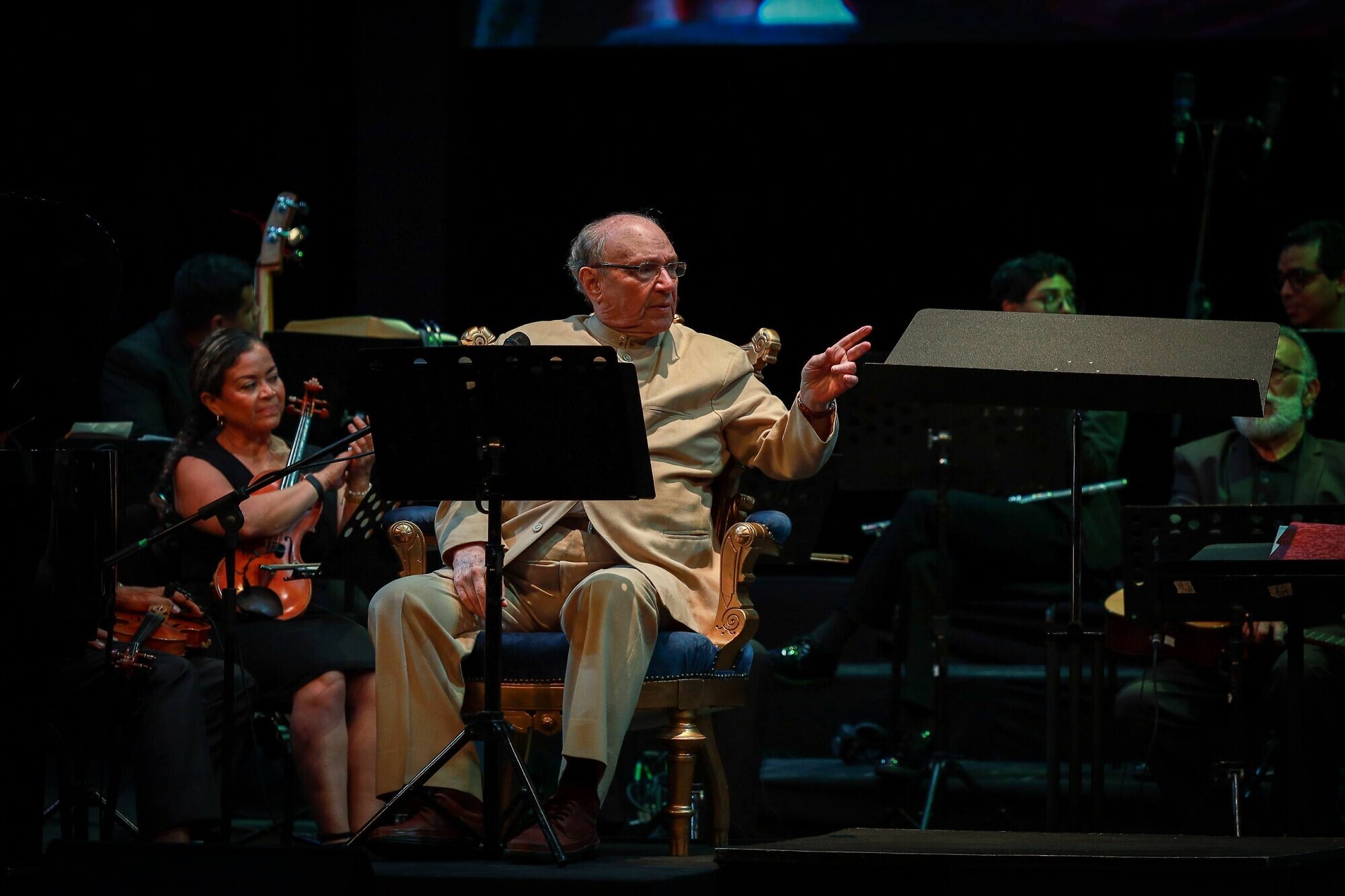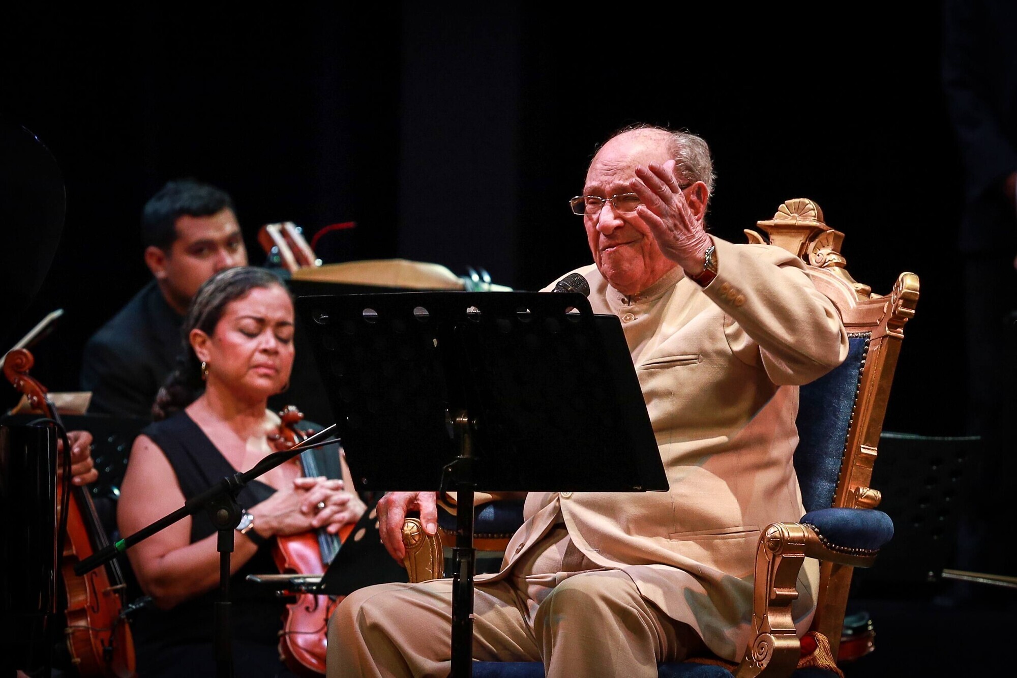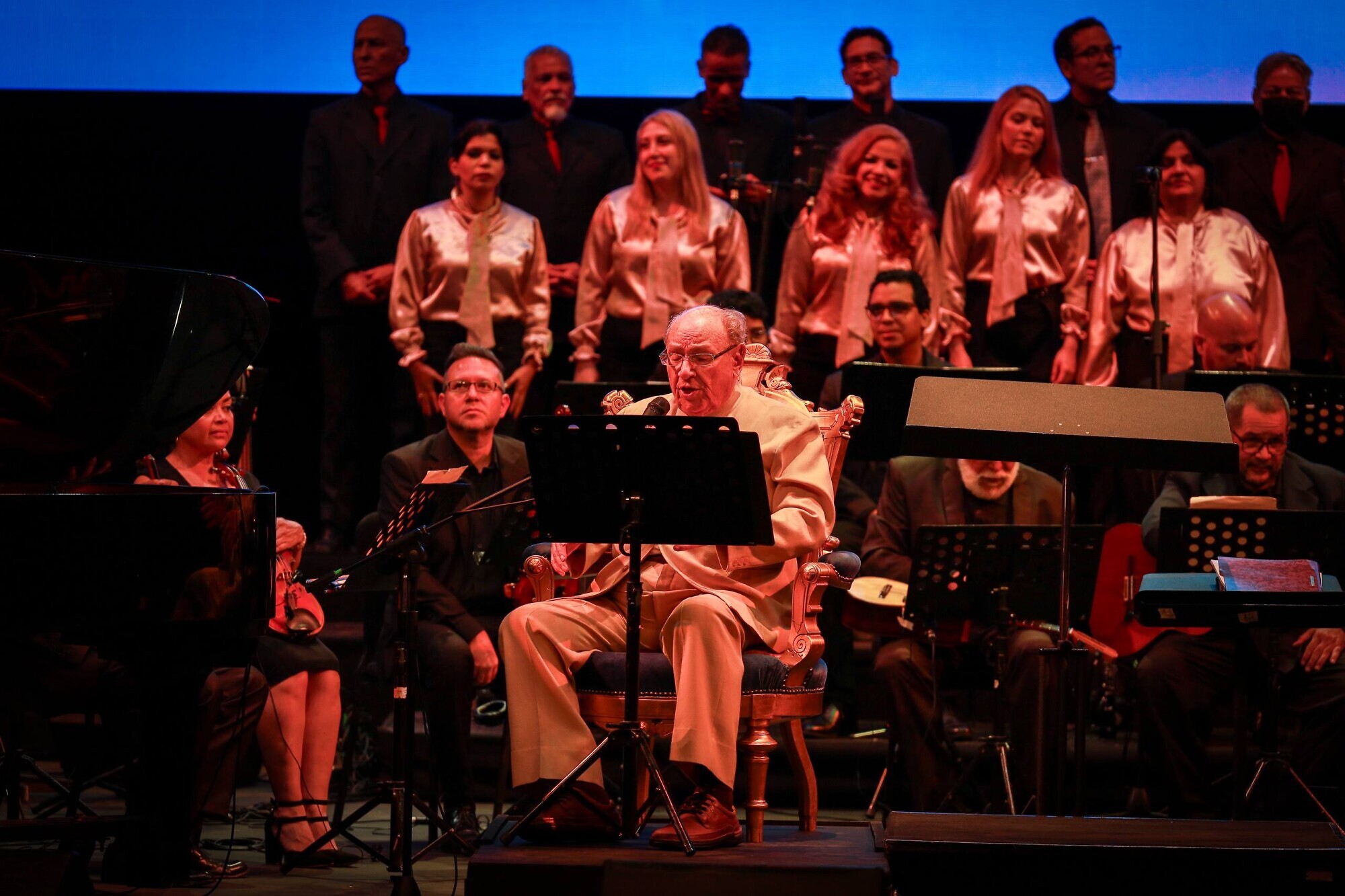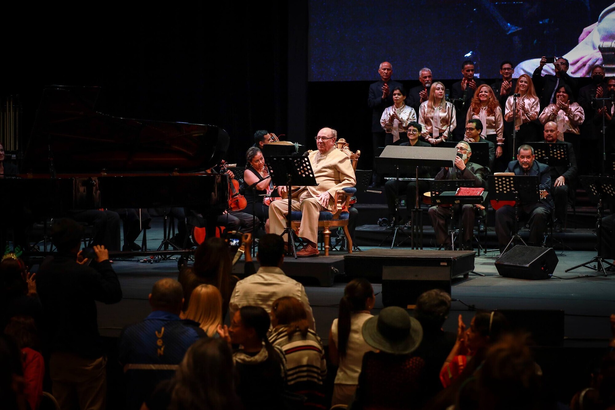 Jesús “Chuchito” Sanoja, quien lo acompañó en el piano, manifestó estar profundamente agradecido de estar a su lado en sus 93 años de vida. “Todo lo que existe lo ha cantado él. Hemos tenido una relación de muchísimos años. Esta maravillosa presentación es producto de un filigrama muy delicado con la participación de muchísima gente para que esto salga impecable”.