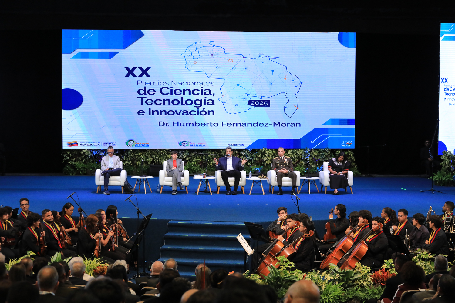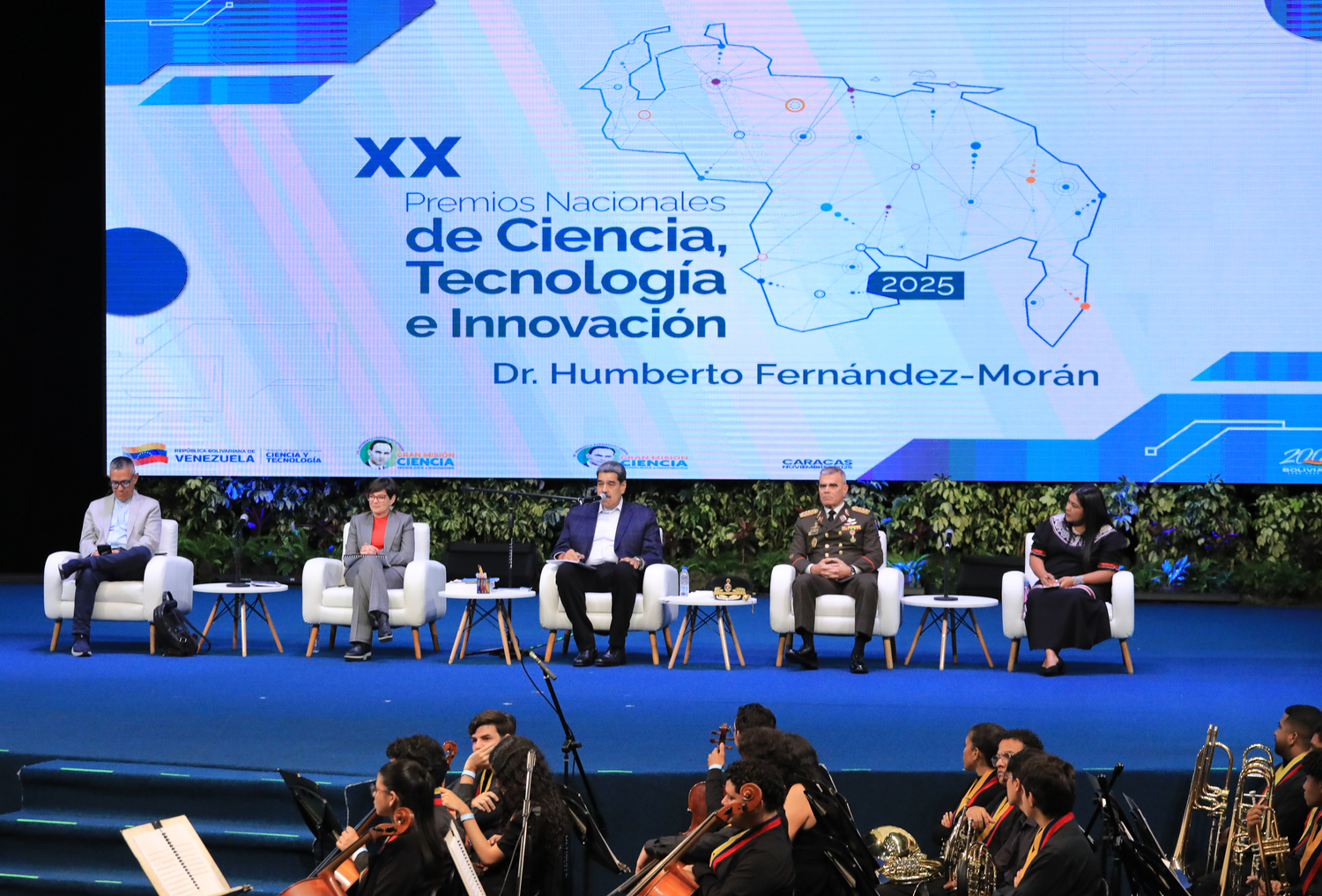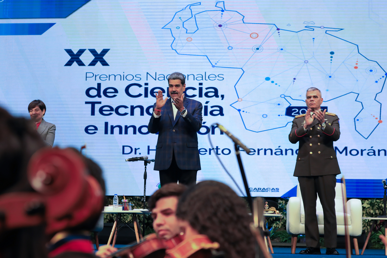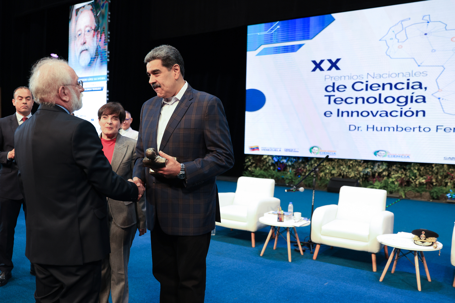 El Presidente venezolano, Nicolás Maduro, encabezó este martes la entrega de los XX Premios Nacionales de Ciencia, Tecnología e Innovación Dr. Humberto Fernández-Morán, impulsados por el Gobierno Bolivariano a través del Ministerio del Poder Popular para Ciencia y Tecnología (Mincyt). Desde la sala Ríos Reyna del Teatro Teresa Carreño, el Presidente aseguró que el conocimiento científico está dando resultados impresionantes y valoró la importancia de la ciencia aplicada en varios campos de interés estratégico para el país.