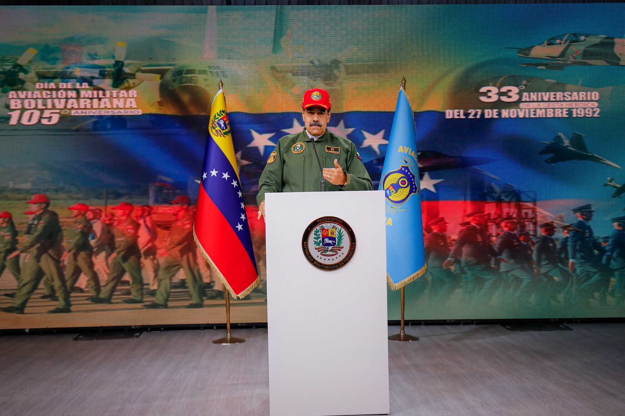 El Presidente de Venezuela, Nicolás Maduro, aseguró este jueves que ninguna «amenaza ni agresión» extranjera amedrenta al pueblo venezolano, tras cumplirse 17 semanas de amenazas por parte de fuerzas extranjeras antiimperialistas (EEUU), durante un discurso pronunciado en conmemoración al 105° Aniversario de la Aviación Militar Bolivariana de Venezuela y los 33° de la Gesta Heroica del 27 de noviembre de 1992.