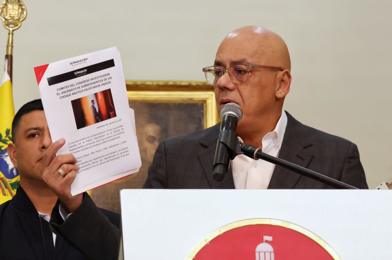 El presidente de la Asamblea Nacional machacó que entre Venezuela y Estados Unidos no existe una guerra declarada, por lo que a su juicio, una de las motivaciones de los congresistas y senadores de EE.UU. de investigar ahora los asesinatos de la administración de Trump en el Caribe, «es para salvaguardar también a los soldados estadounidenses que se encuentran en una situación de conflagración en alguna parte del mundo».