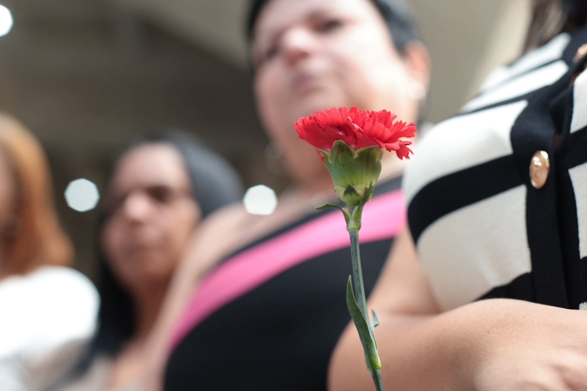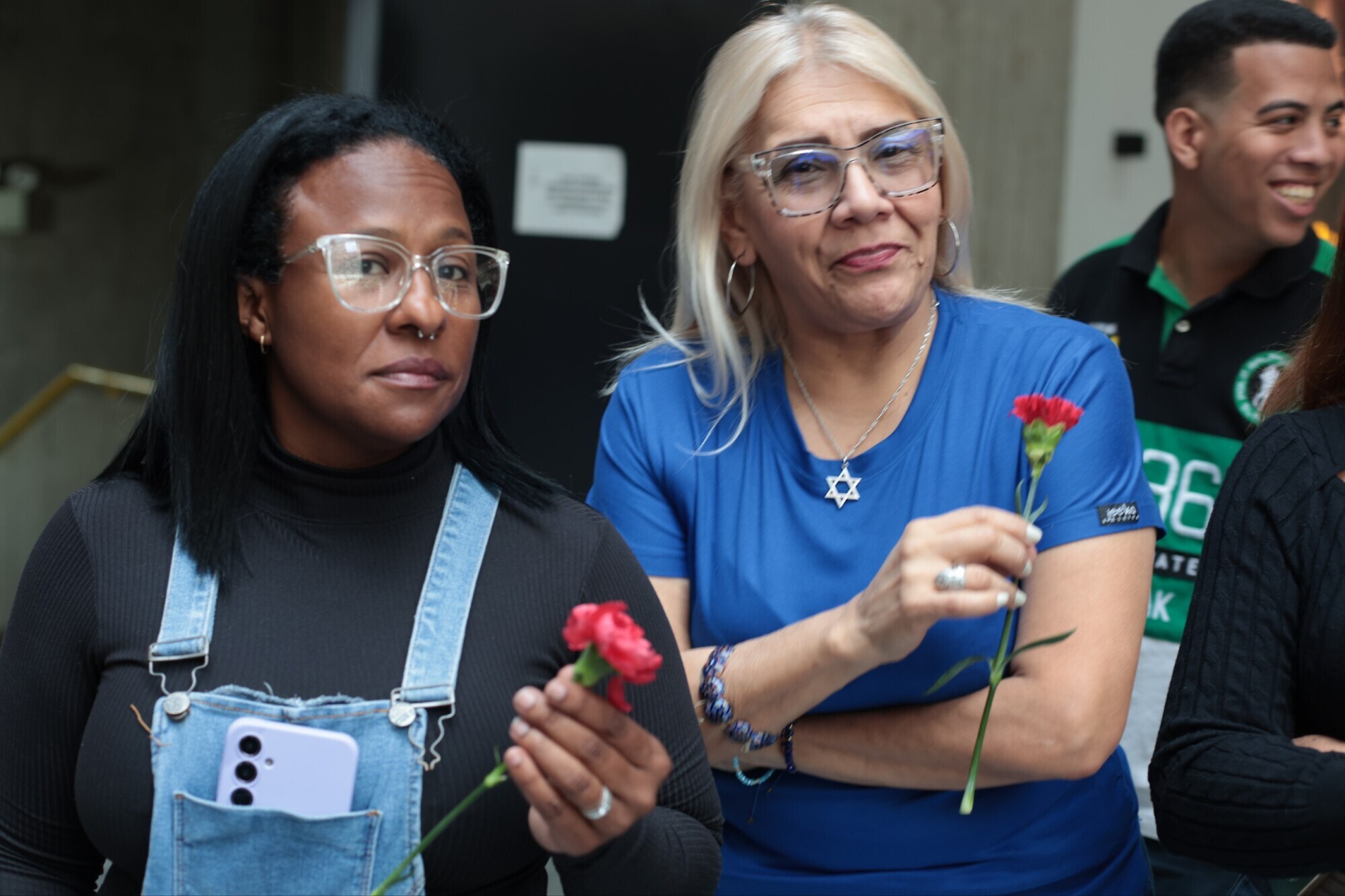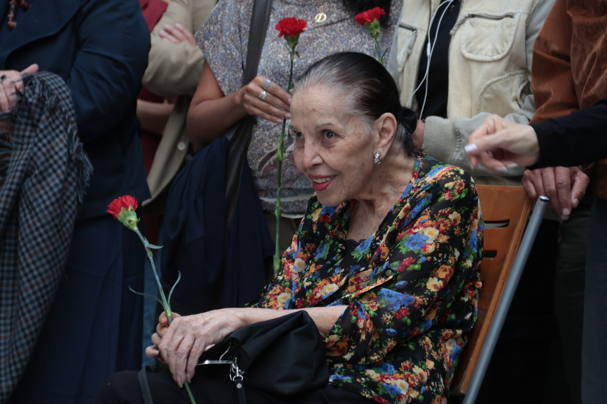 Los asistentes honraron ambas figuras colocando rosas ante las esculturas.