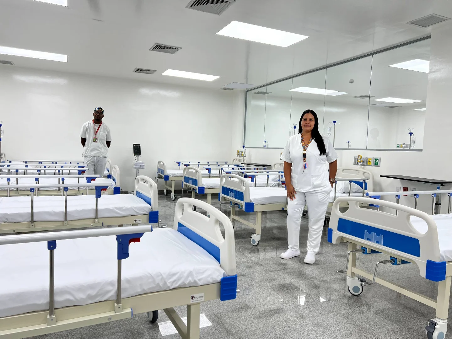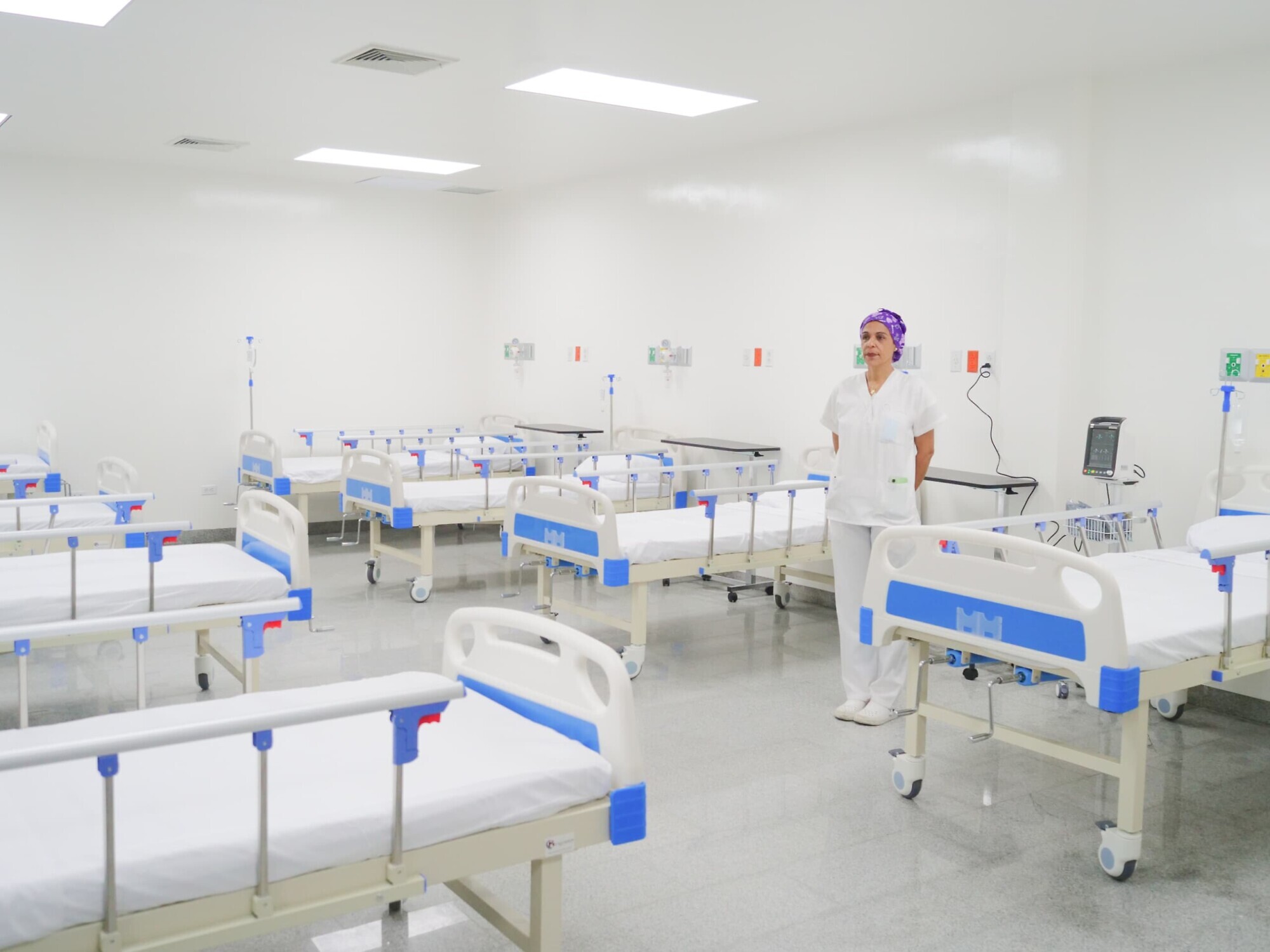 - La directora del recinto, doctora Maurilina Guzmán, explicó que en el piso uno de esta infraestructura estará ubicado el servicio de medicina interna, con aproximadamente 3.150 metros cuadrados de extensión, donde funcionarán los cuidados especiales, con ocho camas; además de la terapia intensiva, con 10 cupos, y la sala de observación para hombres y mujeres, con un total de 44 camas. En este nivel, también estarán los espacios de las coordinaciones de posgrados y jefaturas de servicio.