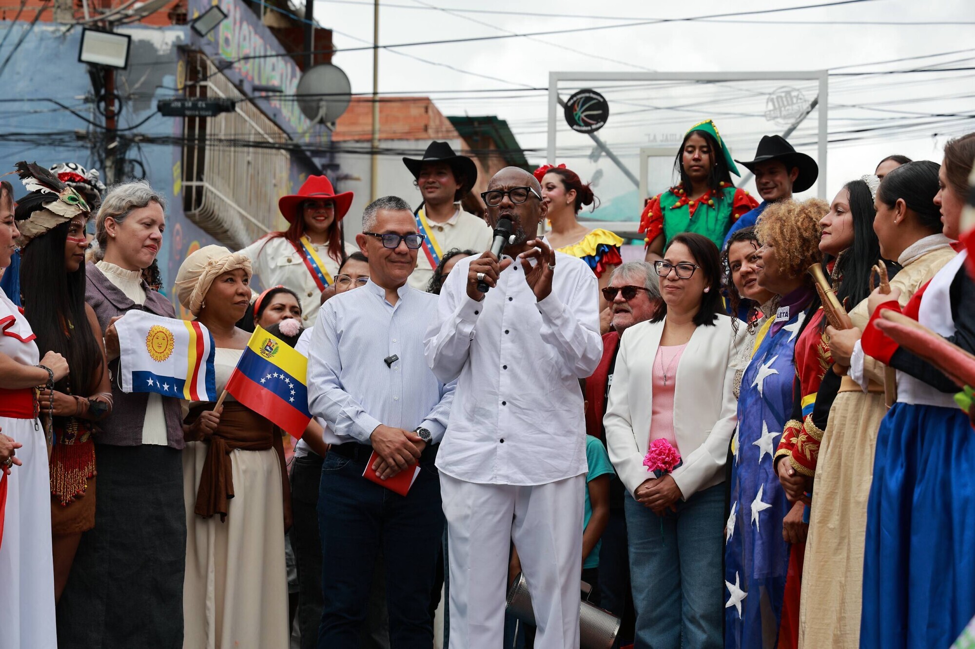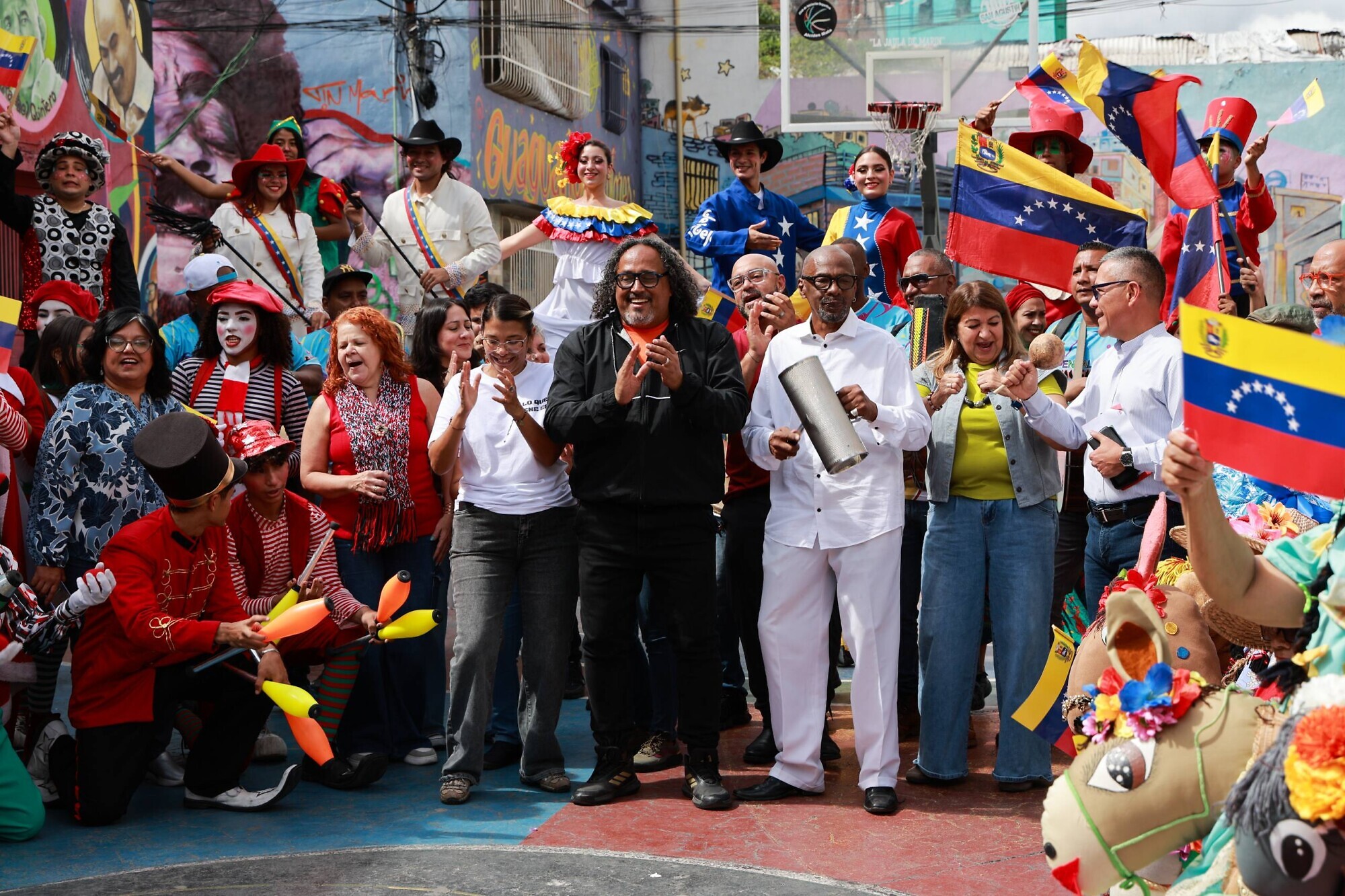 Rodeado de artistas, cultores y creadores, el ministro del Poder Popular para la Cultura, Ernesto Villegas, en compañía de la ministra para la Mujer e Igualdad de Género, Yelitze Santaella, entre otras autoridades culturales, destacó la riqueza cultural de las festividades navideñas en nuestro país.