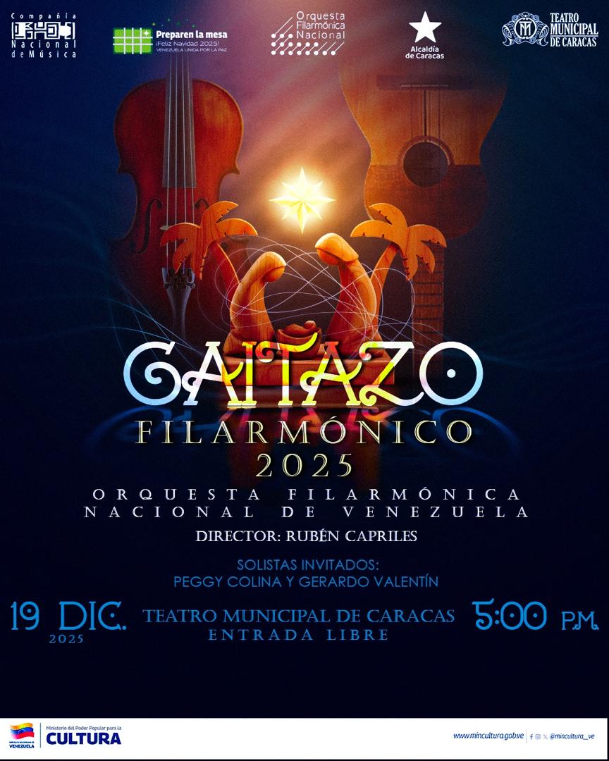 La Fundación Compañía Nacional de Música, adscrita al Ministerio del Poder Popular para la Cultura (MPPC), invita a celebrar las fiestas decembrinas con su tradicional “Gaitazo Filarmónico”. Este evento, que une a la familia y celebra la identidad nacional, tendrá lugar el próximo viernes 19 de diciembre en la sala Juan Bautista Plaza, a partir de las 5:00 p.m., con entrada libre.