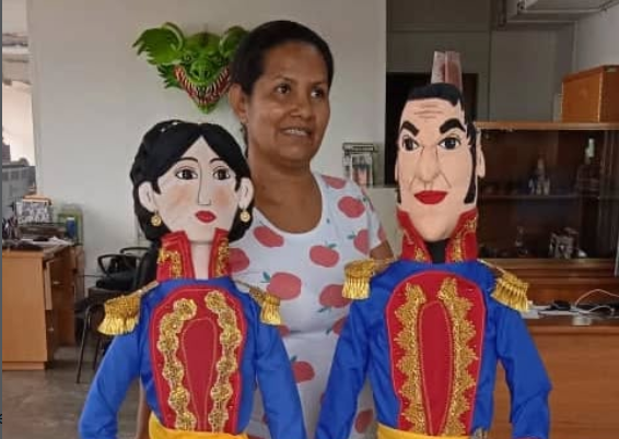 Karina se identifica como una artesana que teje la identidad del estado Miranda. Su trabajo se enfoca en personajes históricos del país, como Bolívar, Miranda y Manuela Sáenz. Durante la celebración, presentó una pieza emblemática del presidente Nicolás Maduro y la primera dama, Cilia Flores, la cual generó gran impacto.