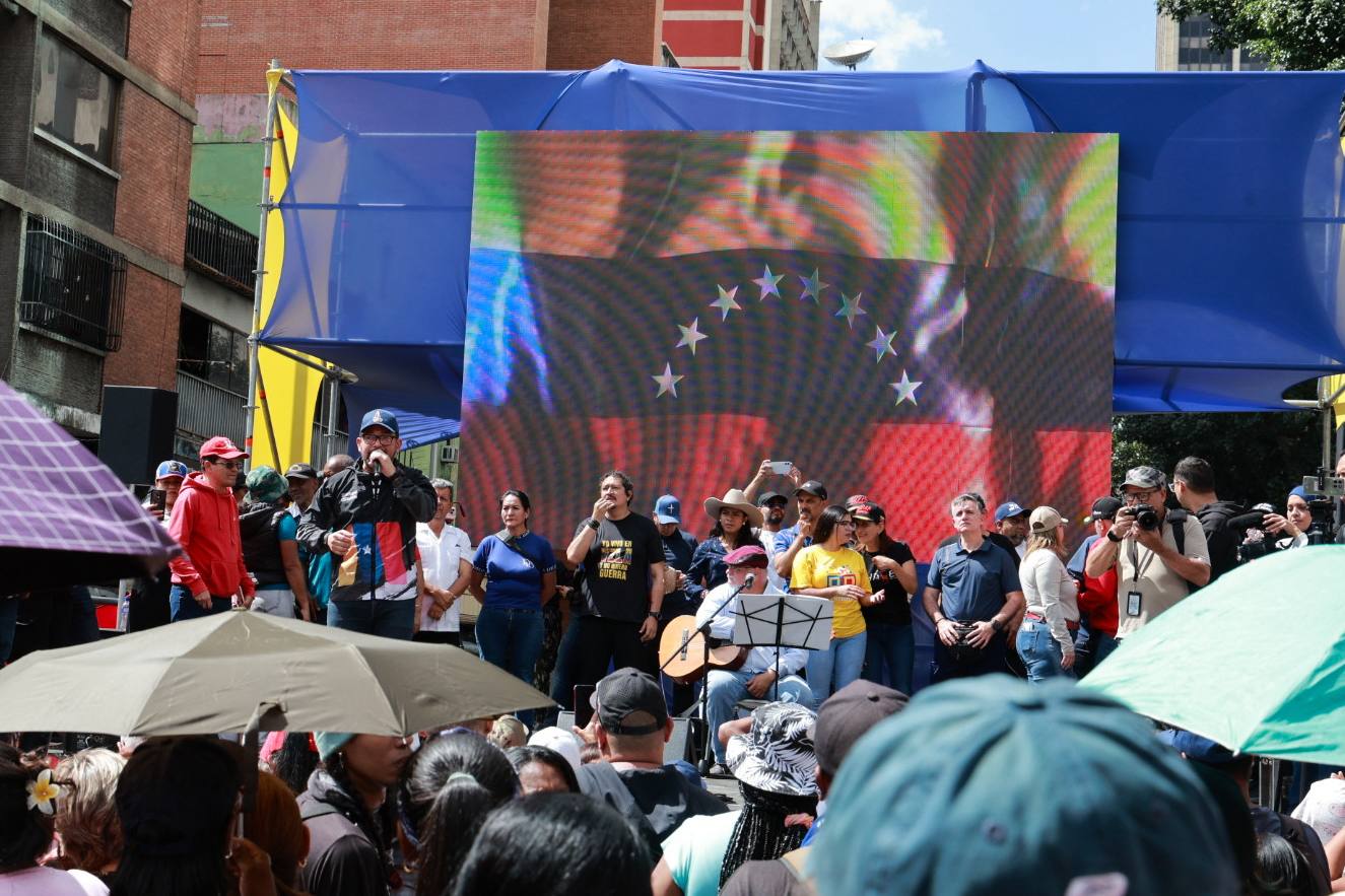 Entre cantos y consignas, los asistentes instaron a la comunidad internacional a pronunciarse ante esta acción injerencista, reafirmando que el sector cultural se mantendrá en permanente movilización hasta lograr el retorno del Mandatario Nacional y la Primera Dama de la República.