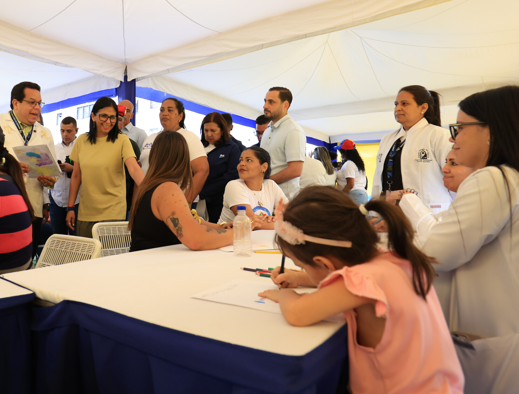 Acompañada por el gabinete social, la alcaldesa de Caracas y el ministro de Obras Públicas, Juan José Ramírez, Rodríguez constató los avances en el Consultorio Tipo II “Carlos Raúl Villanueva” y las labores de restauración de viviendas.