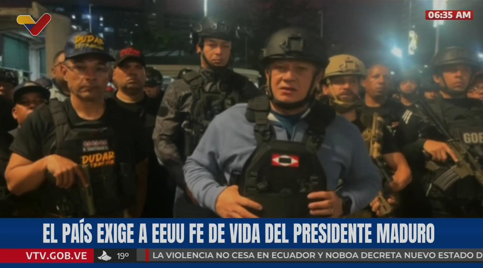 Venezuela, a pesar de los ataques terroristas de Estados Unidos, se mantiene en completa calma, informó el vicepresidente sectorial de Política, Seguridad Ciudadana y Paz, Diosdado Cabello Rondón, en declaraciones difundidas por Venezolana de Televisión (VTV) este sábado a las 6:35 de la mañana, luego del ataque militar realizado por Estados Unidos contra Caracas y otras ciudades del país.