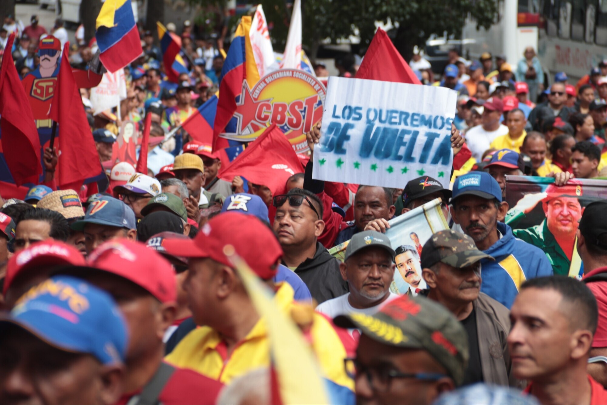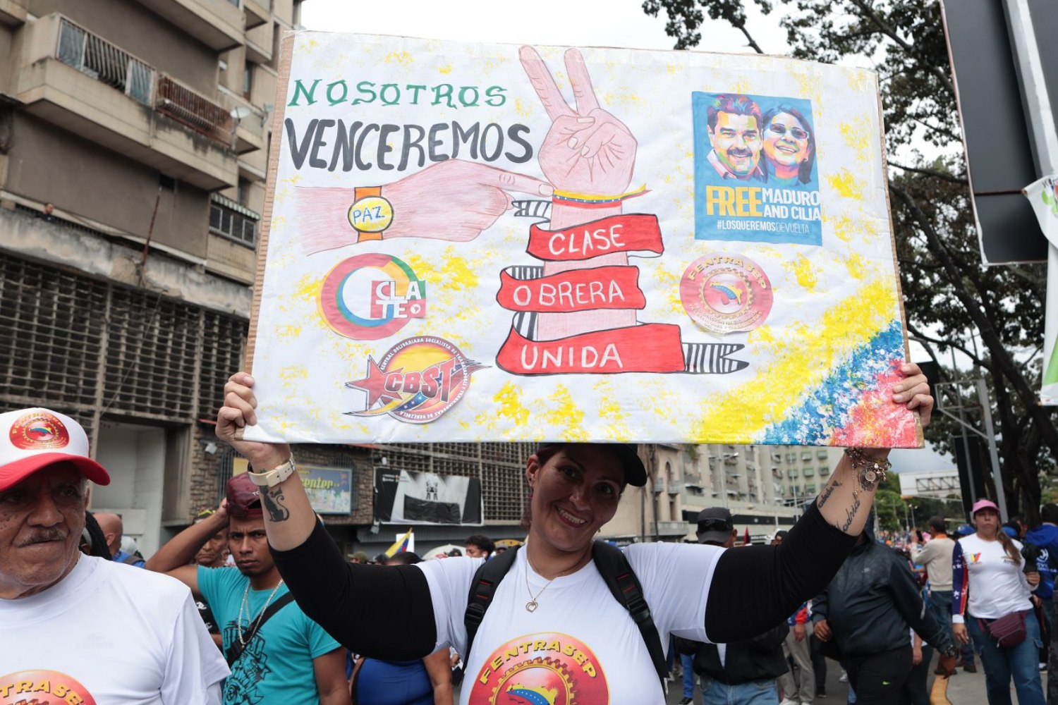 Una multitudinaria movilización de los trabajadores y trabajadoras de la patria colmó las calles de Caracas este miércoles, en respaldo al Presidente Constitucional de la República Bolivariana de Venezuela, Nicolás Maduro Moros, y a la Primera Dama, Cilia Flores, exigiendo su liberación tras haber sido secuestrados el pasado 3 de enero por fuerzas militares estadounidenses.