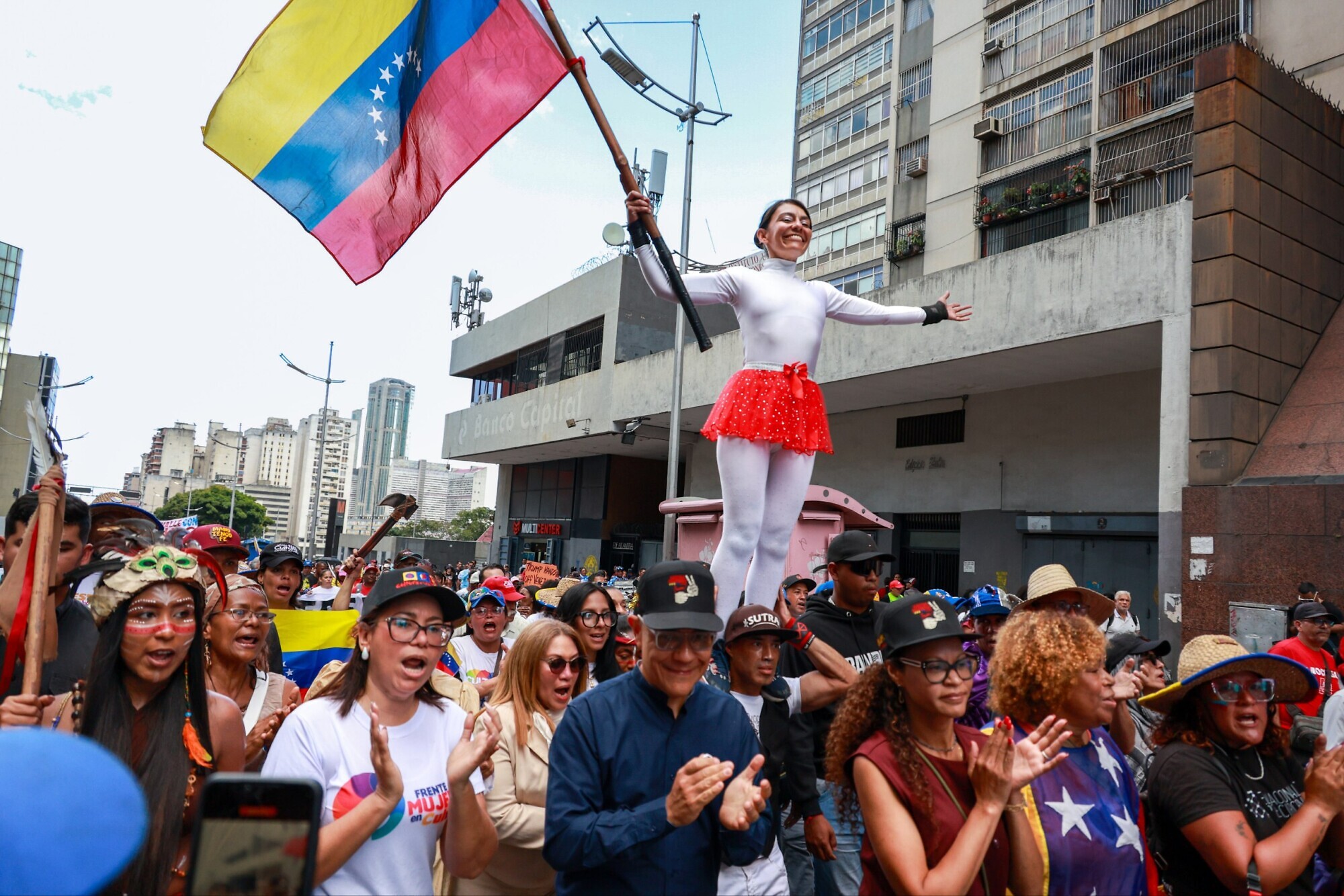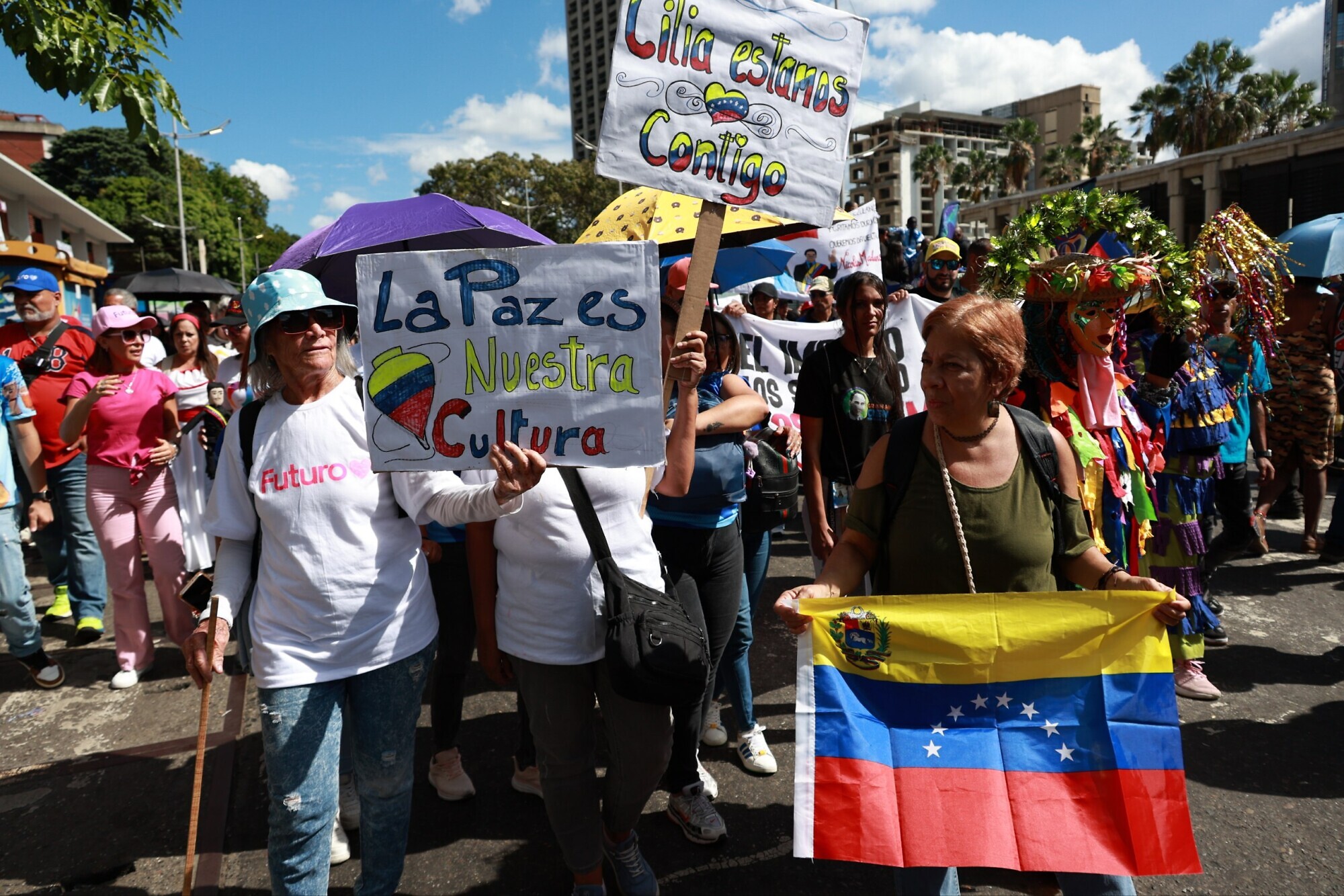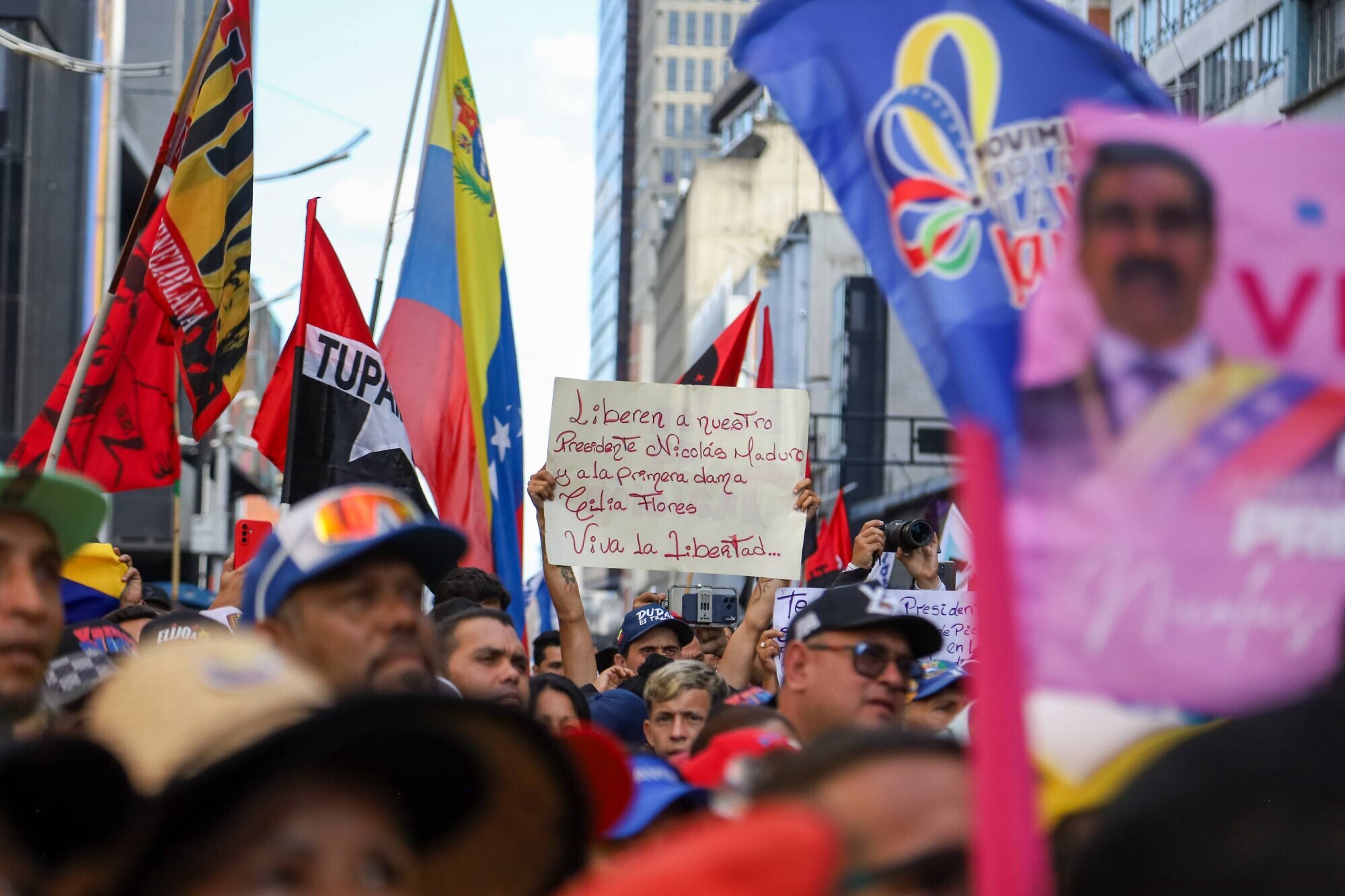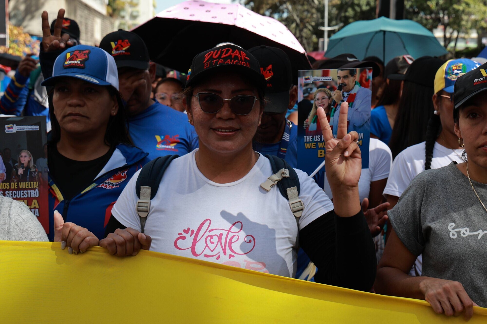 “Nuestra movilización permanente tiene como objetivo garantizar que se devuelva a nuestro presidente electo, constitucional, Nicolás Maduro, y a nuestra primera combatiente, Cilia Flores. Aquí está el pueblo caminando, exigiendo justicia”, expresó.