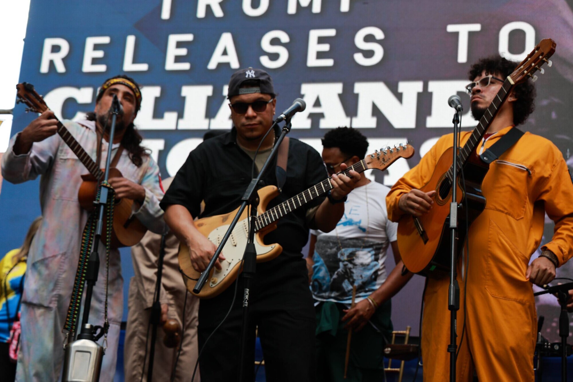 Por su parte, el diputado Nicolás Maduro Guerra, que también intervino en la concentración, agradeció las múltiples expresiones de solidaridad recibidas desde Venezuela y el mundo, al tiempo que denunció el secuestro del jefe de Estado y su esposa por parte de fuerzas extranjeras. “Gracias por tantas muestras de solidaridad, no sólo en el país, sino en cada rincón del mundo donde se alza la voz por la verdad de Venezuela”, expresó el parlamentario.