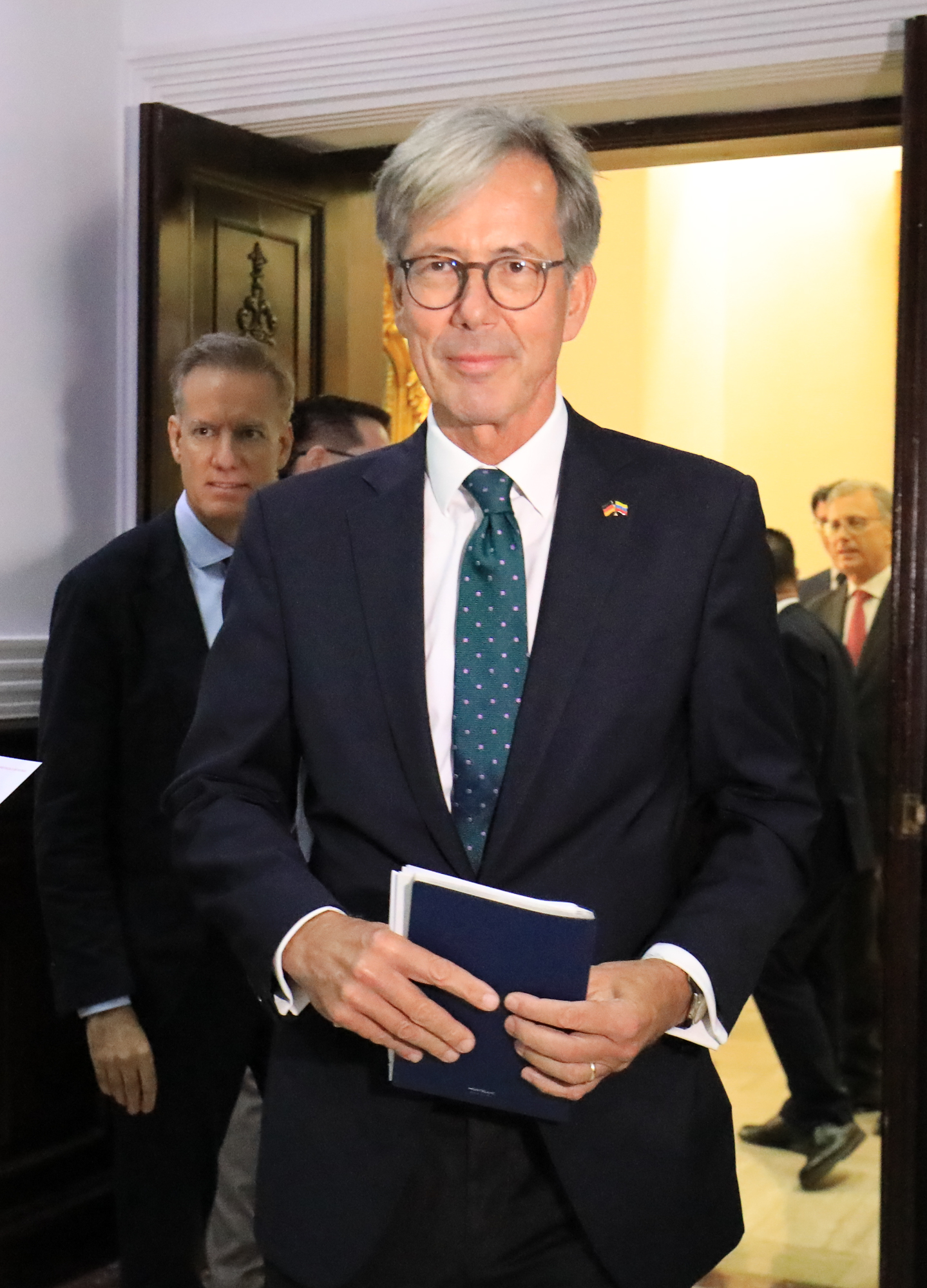 «Hemos repasado el estado de las relaciones entre Venezuela y los gobiernos de la Unión Europea, del Reino Unido y de la Confederación Suiza», precisó Gil al culminar la actividad, calificando el encuentro como una reunión «franca, cordial y amena».