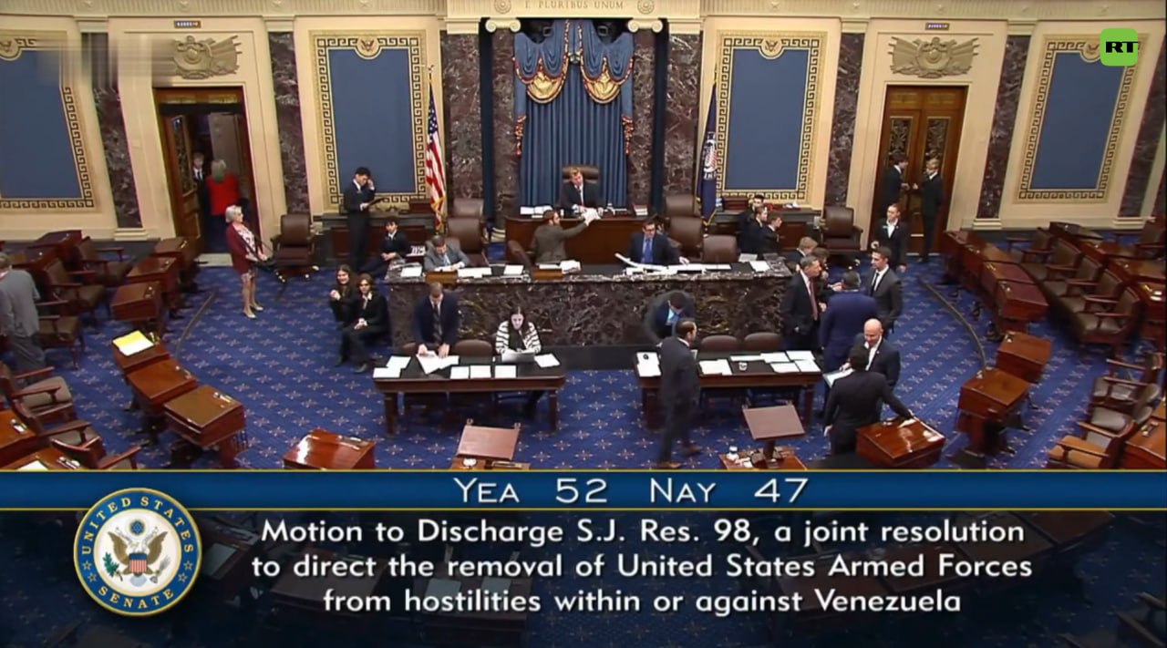 La moción presentada para llevar la resolución al pleno del Senado recibió 52 votos a favor y 47 en contra, ya que al menos cinco senadores del Partido Republicano de Donald Trump se unieron a los demócratas en la votación, recoge NBC.