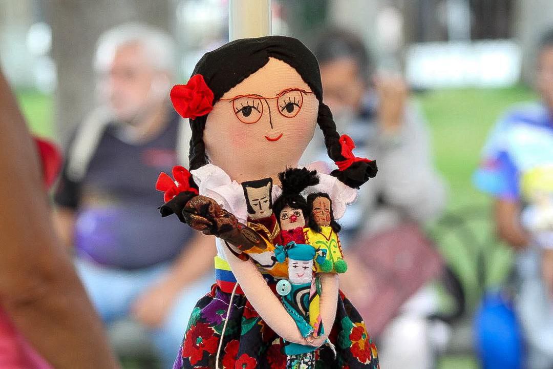 Entre las muñequeras presentes, María Antonieta González, del colectivo comunicacional Comunicalle y quien también personifica al personaje de Zobeyda Jiménez, expresó que en el contexto actual “tenemos que luchar por nuestra identidad, por nuestra soberanía. Qué mejor forma que la parte artesanal. Aquí todos en Venezuela tenemos una identidad que estamos cuidando y protegiendo.”