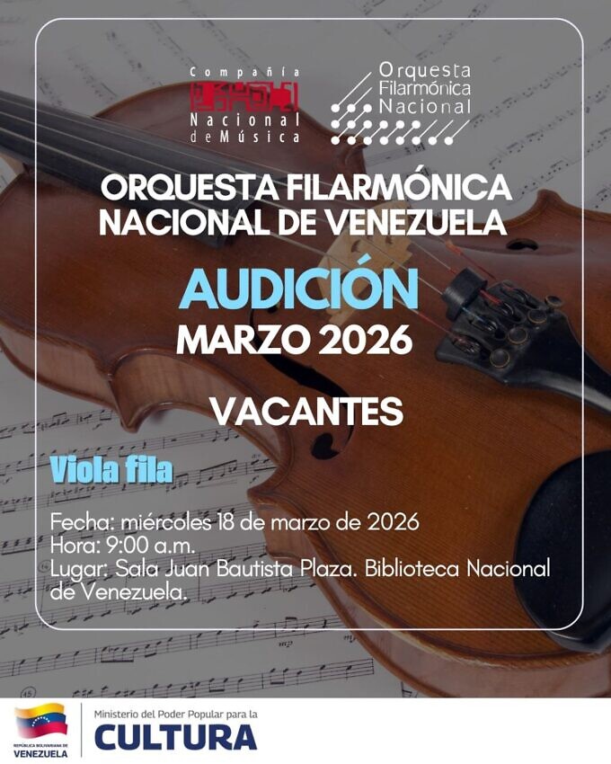 La Orquesta Filarmónica Nacional de Venezuela brinda la siguiente vacante:
