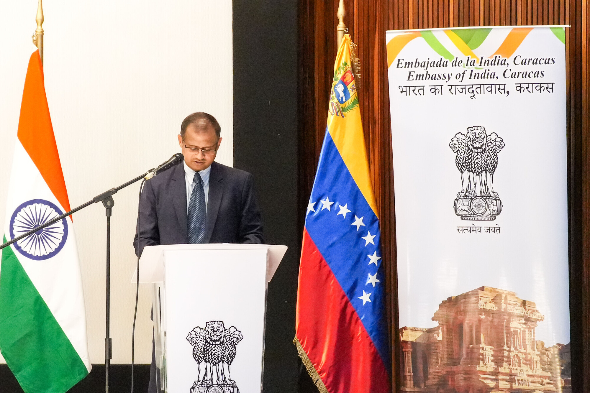 El acto contó con la participación del ministro del Poder Popular para la Cultura, Raúl Cazal; el embajador de la República de la India, Shri P K Ashok Babu; miembros del cuerpo diplomático acreditado en el país y autoridades del sector cultural venezolano.