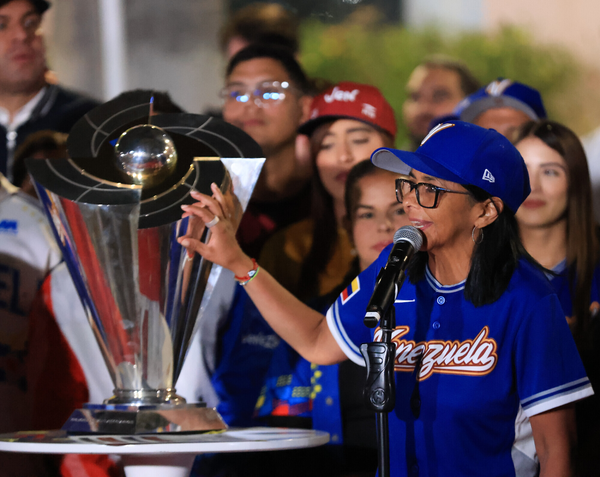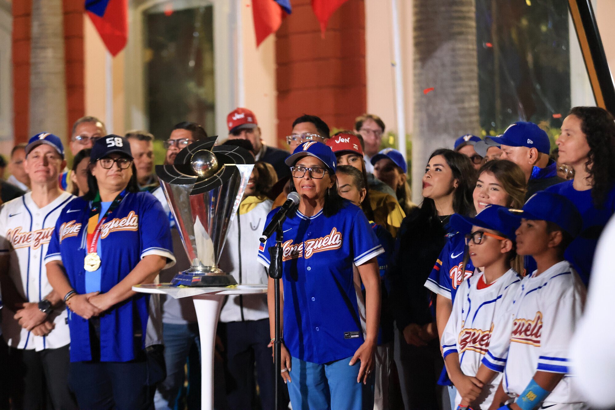 La presidenta encargada también envió sus felicitaciones a la organización de las Grandes Ligas por este evento, cuyo triunfo Venezuela obtiene por primera vez en la historia y quiero también felicitar a todos los equipos participantes, 20 países en total».