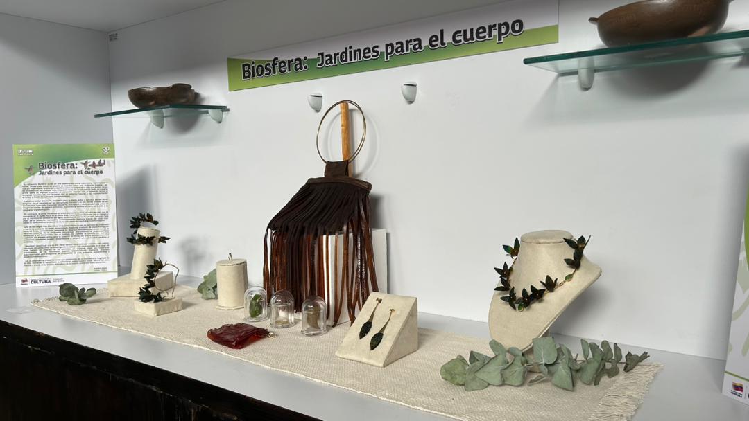 La jornada comenzó con la exposición “Biosfera: jardines para el cuerpo”, de la diseñadora y orfebre Scarleth Ochoa. La artista, quien desde 2023 se ha dedicado a la investigación y diseño de piezas originales, destaca por integrar en su joyería el aroma natural de las frutas.