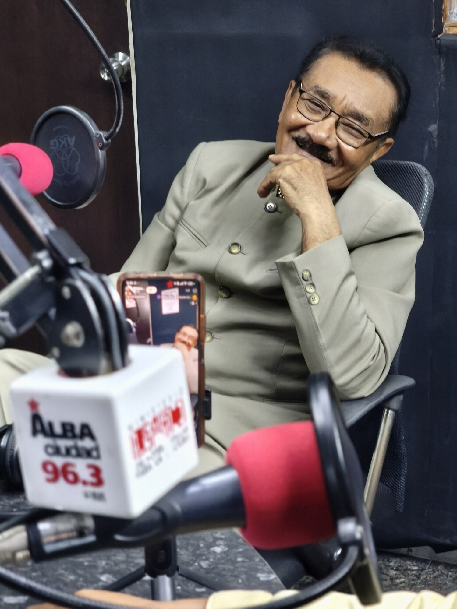 Para finalizar la entrevista, la periodista le pidió al maestro que regalara una copla improvisada a los oyentes de Alba Ciudad. Colmenares, fiel a su estilo, tomó los micrófonos y, en cuestión de segundos, dedicó estos versos a la conductora Oriana Chirinos:
