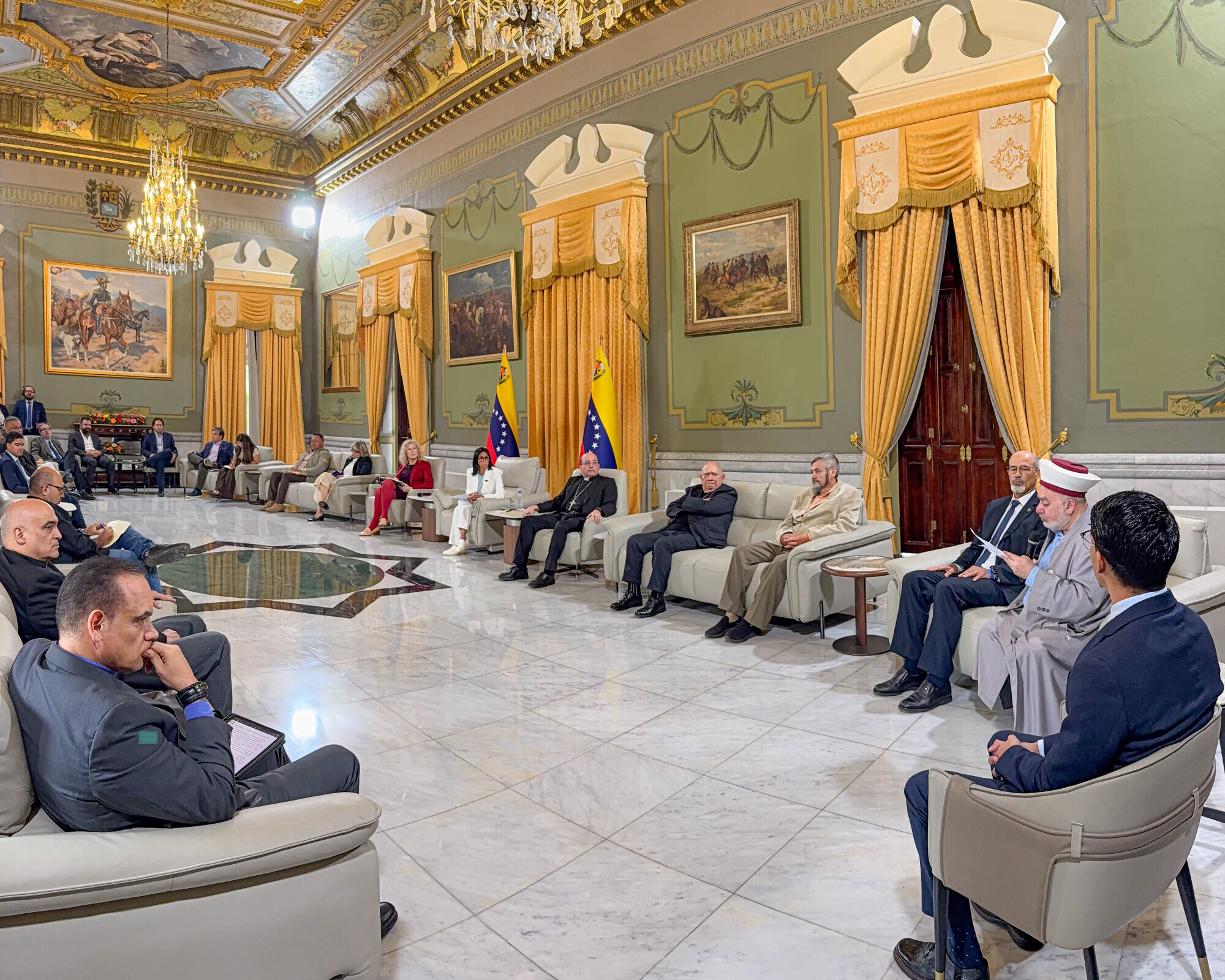 La reunión contó con la participación de representantes de la Conferencia Episcopal Venezolana, la Iglesia Anglicana, el Foro Cívico, la Liga del Mundo Islámico y el Consejo Evangélico, entre otros sectores, quienes sumaron esfuerzos para profundizar el diálogo social. La jefa de Estado encargada destacó que encontrar un punto de unión entre el Programa por la Paz y la Convivencia Democrática y el Foro Interreligioso es fundamental para avanzar hacia una sociedad más reconciliada y orientada al encuentro.