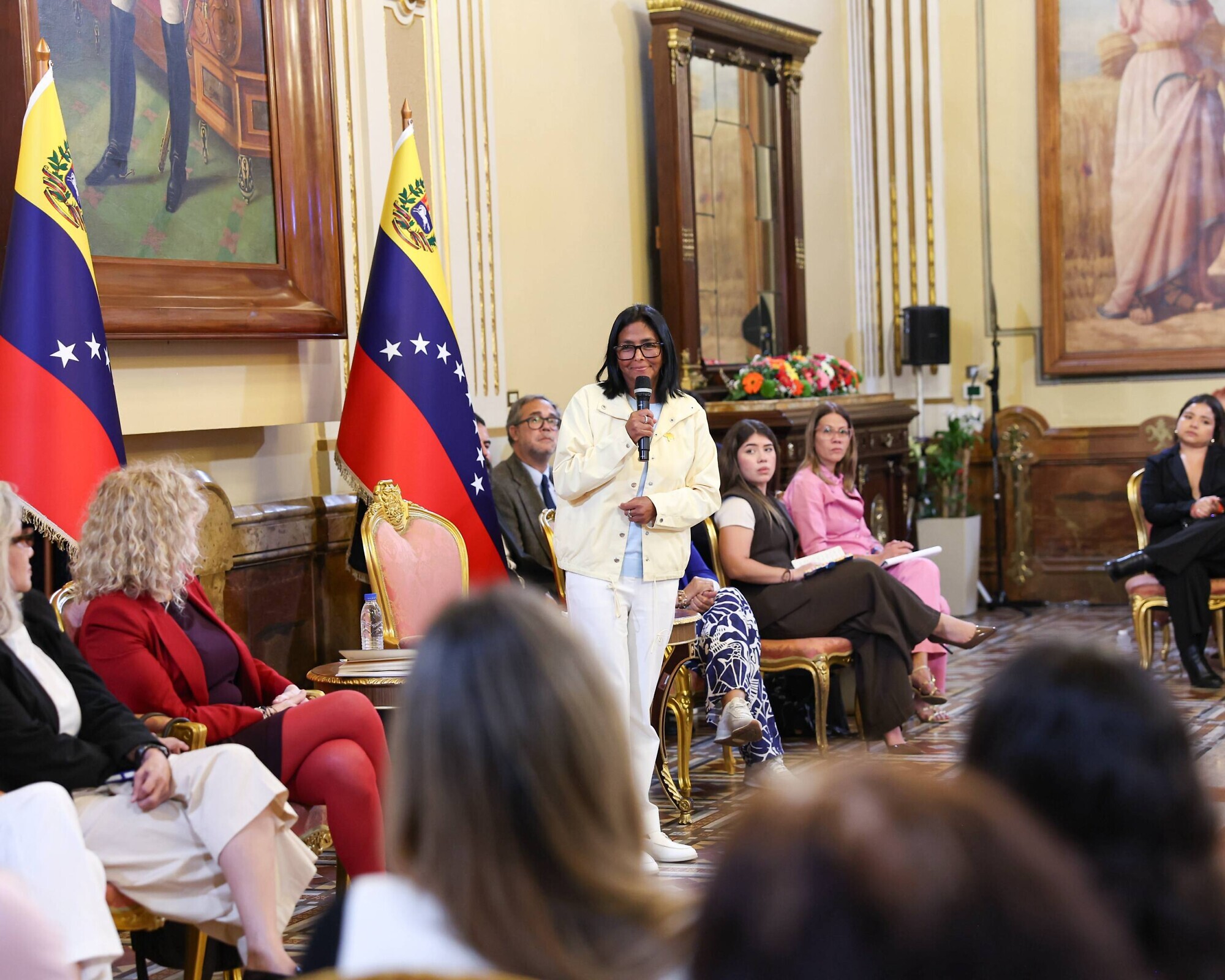 «Nosotros debemos ser no solamente defensoras de la paz, de la tranquilidad, del respeto, del reconocimiento del desigual, del diverso, sino también, como nuestras heroínas y como nuestros pueblos indígenas, defender la soberanía de Venezuela, defender la autodeterminación de Venezuela», sostuvo.