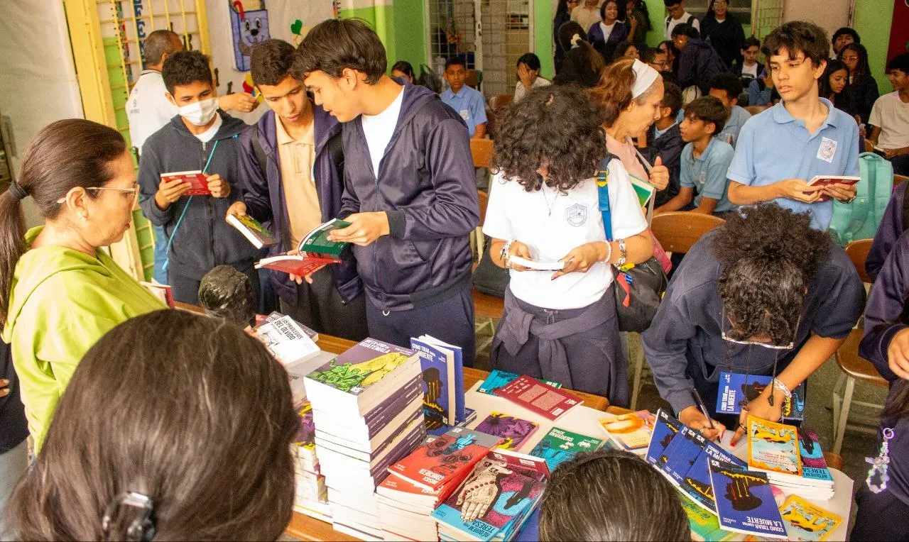 Jóvenes estudiantes de Caricuao, una populosa parroquia caraqueña al suroeste de la capital, accedieron a libros gratuitos de autores del Boom latinoamericano durante una dinámica de mediación lectora impulsada por el Centro Nacional del Libro (Cenal) en la Unidad Educativa Mireya Vanegas, en la que la calidez de la palabra en papel superó la frialdad de las pantallas electrónicas.