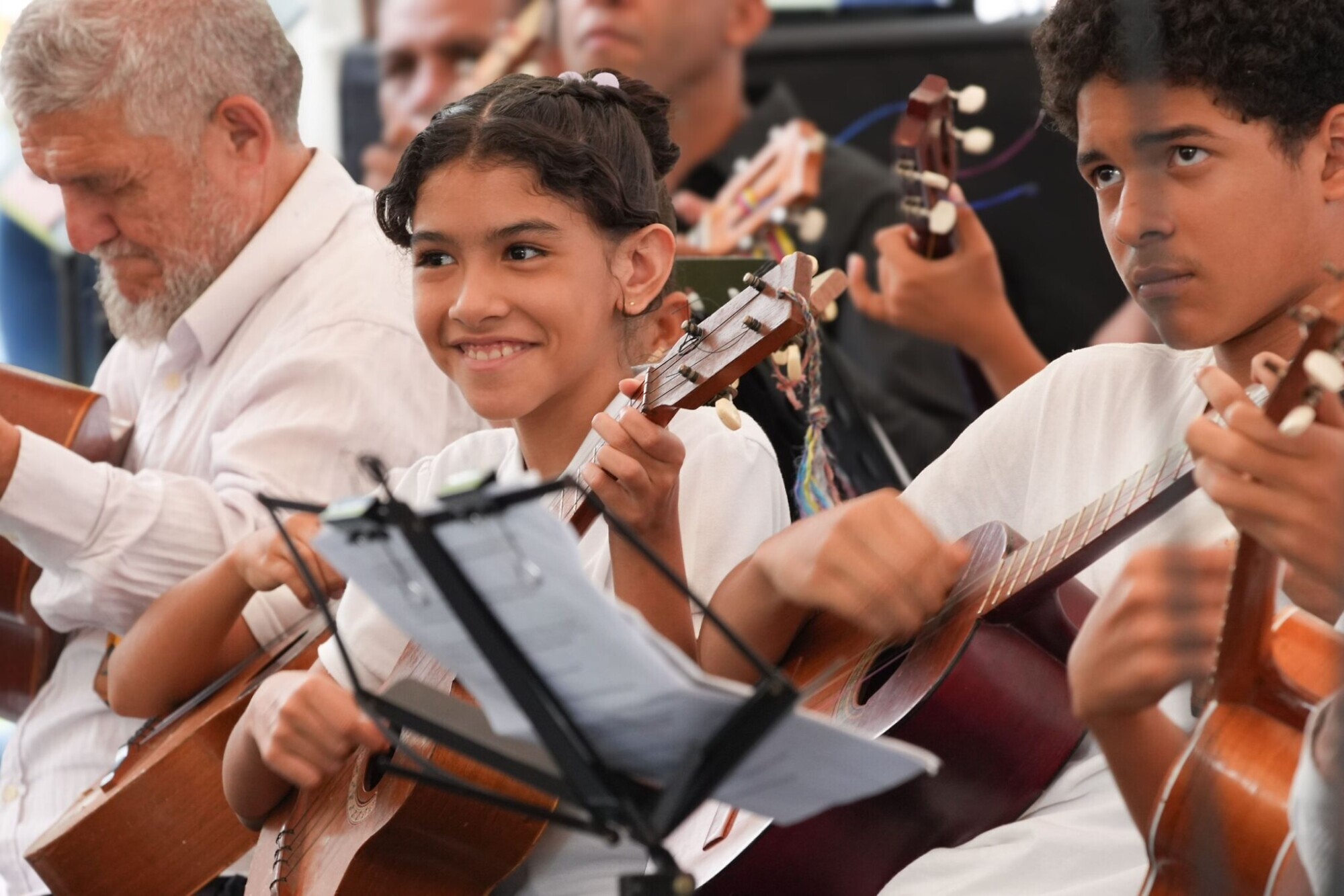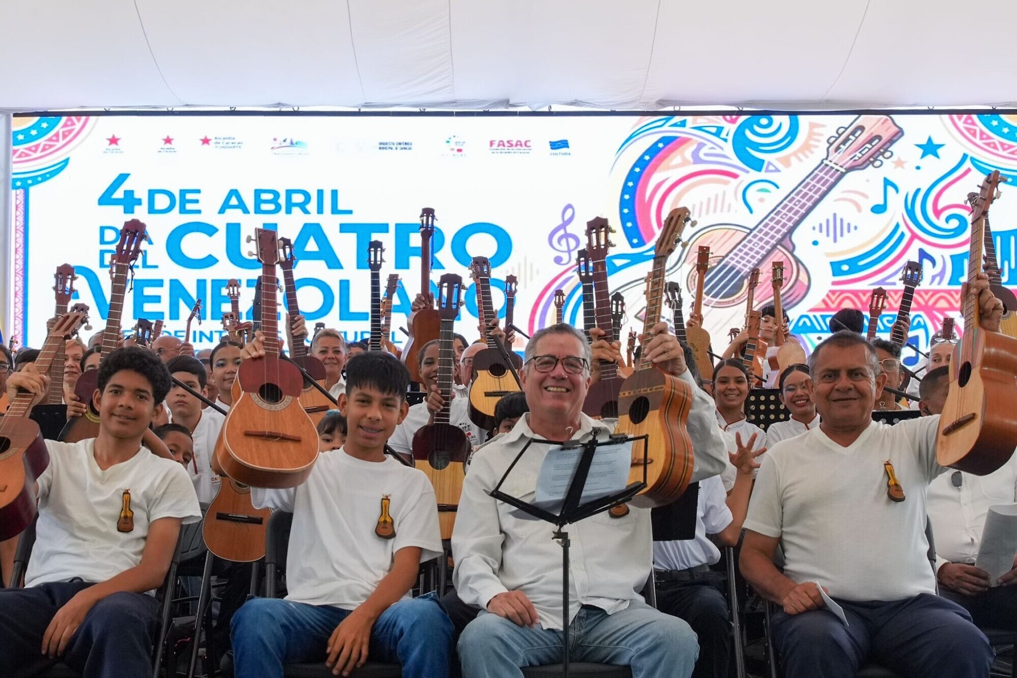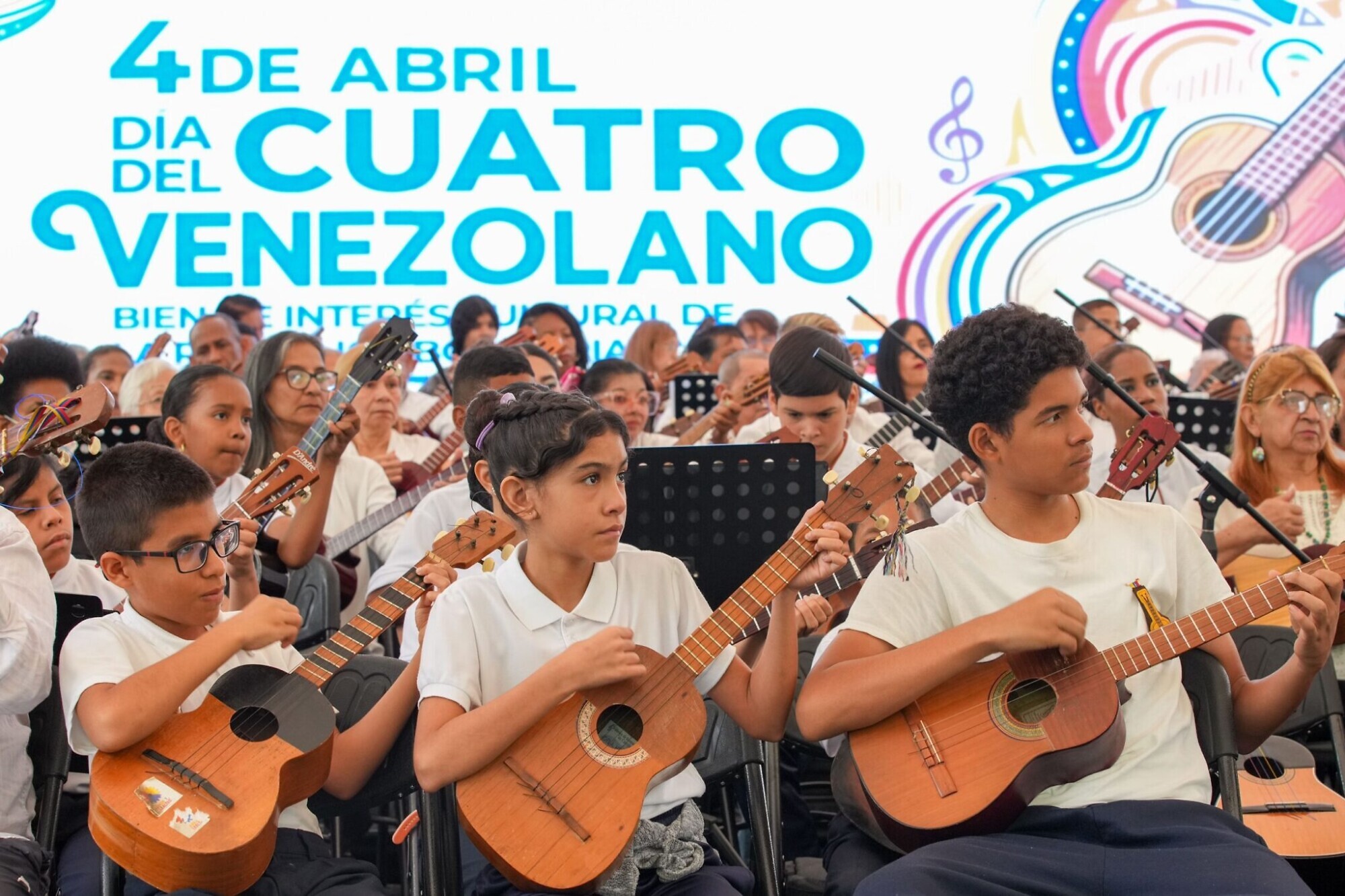 Al final del acto y en honor al instrumento tradicional, Bien de Interés Cultural de la Nación, se hizo entrega de cuatros a niños y niñas de parroquias aledañas, velando por que el “cambur pintón” siga siendo el lenguaje de la paz y la soberanía en cada hogar.