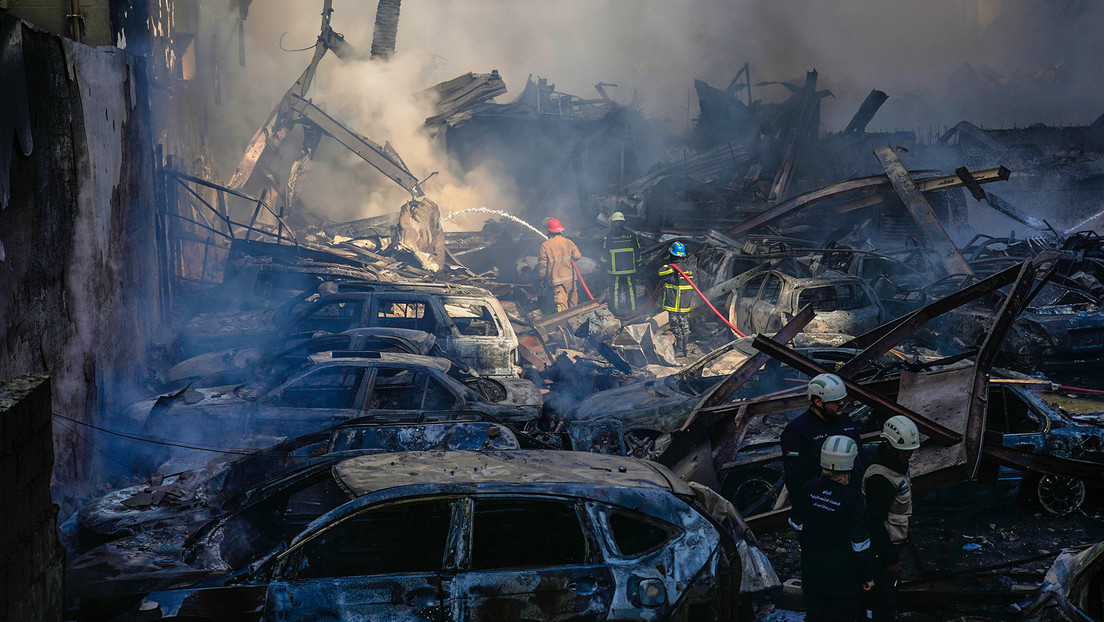 El humo negro se elevaba sobre varias zonas de la capital costera. Los estruendos interrumpieron el ruido de claxon del tráfico en lo que había sido una tarde de cielo azul. Las ambulancias corrieron hacia las llamas. Al menos un edificio de apartamentos fue alcanzado. Los equipos de emergencia registraron vehículos carbonizados.