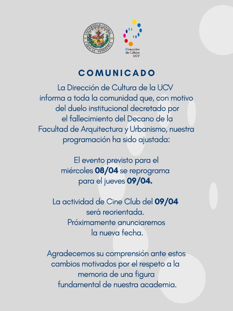 Si bien el evento estaba planificado para el miércoles 8 de abril, fue movido para el día jueves 9 de abril debido al luto por el fallecimiento del decano de la Facultad de Arquitectura y Urbanismo, Dr. Francisco Javier Caricatto Masci.