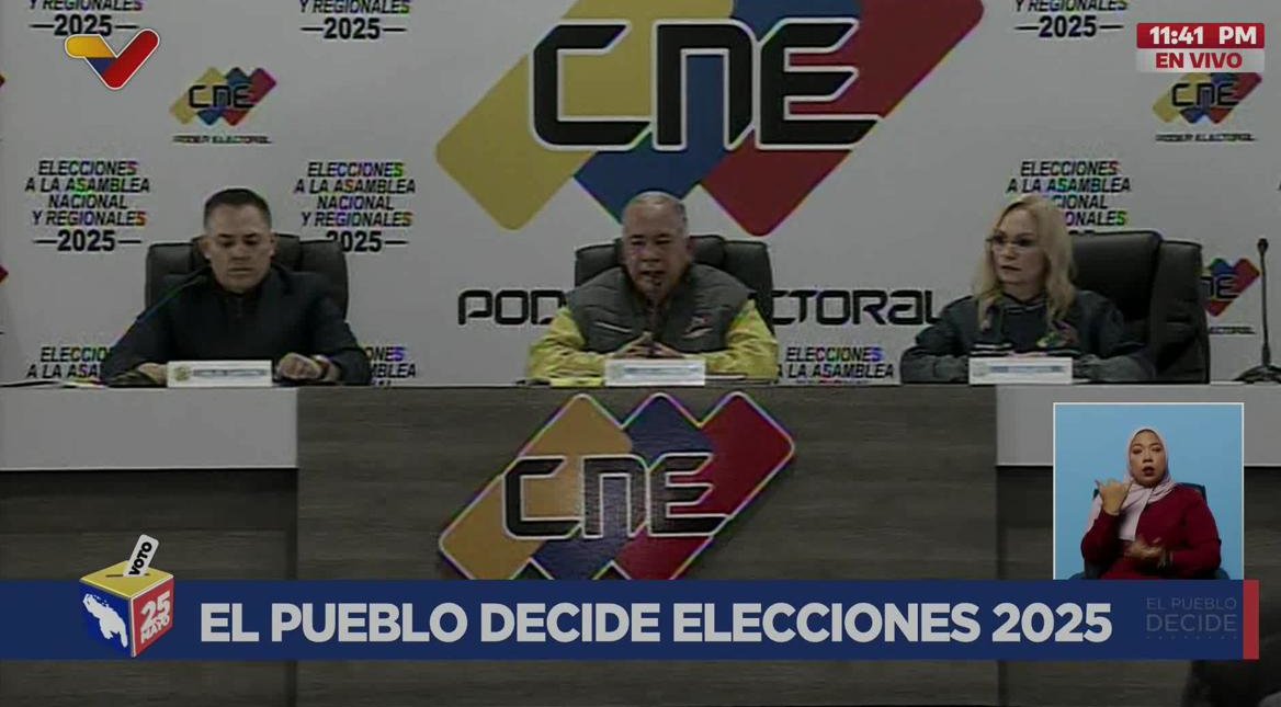 A las 11:40 p.m. de este domingo, el rector principal del Consejo Nacional Electoral, Elvis Amoroso, y el rector Carlos Quintero informaron los primeros resultados de las elecciones de gobernadores, diputados a la Asamblea Nacional y consejos legislativos, realizadas este 25 de mayo.